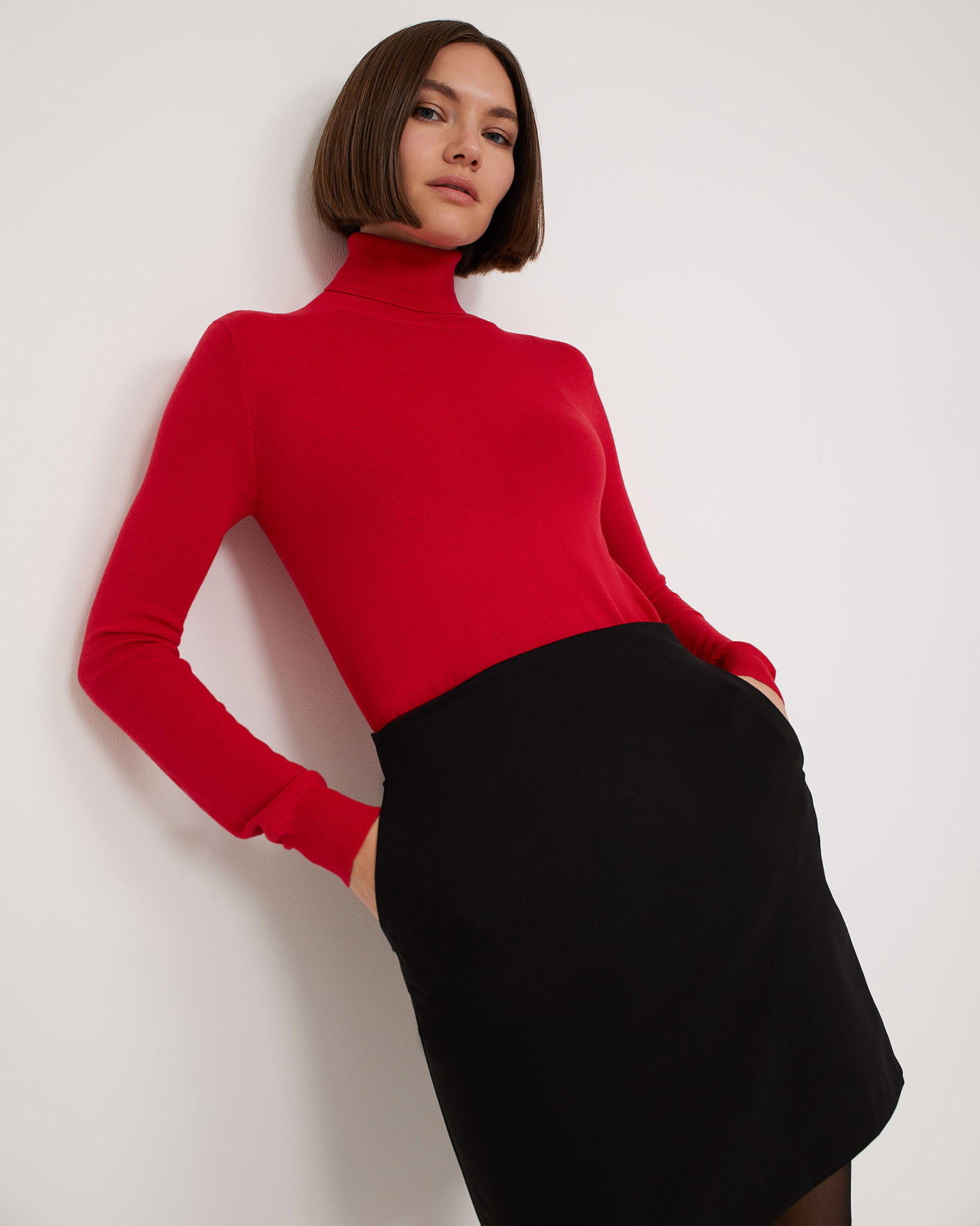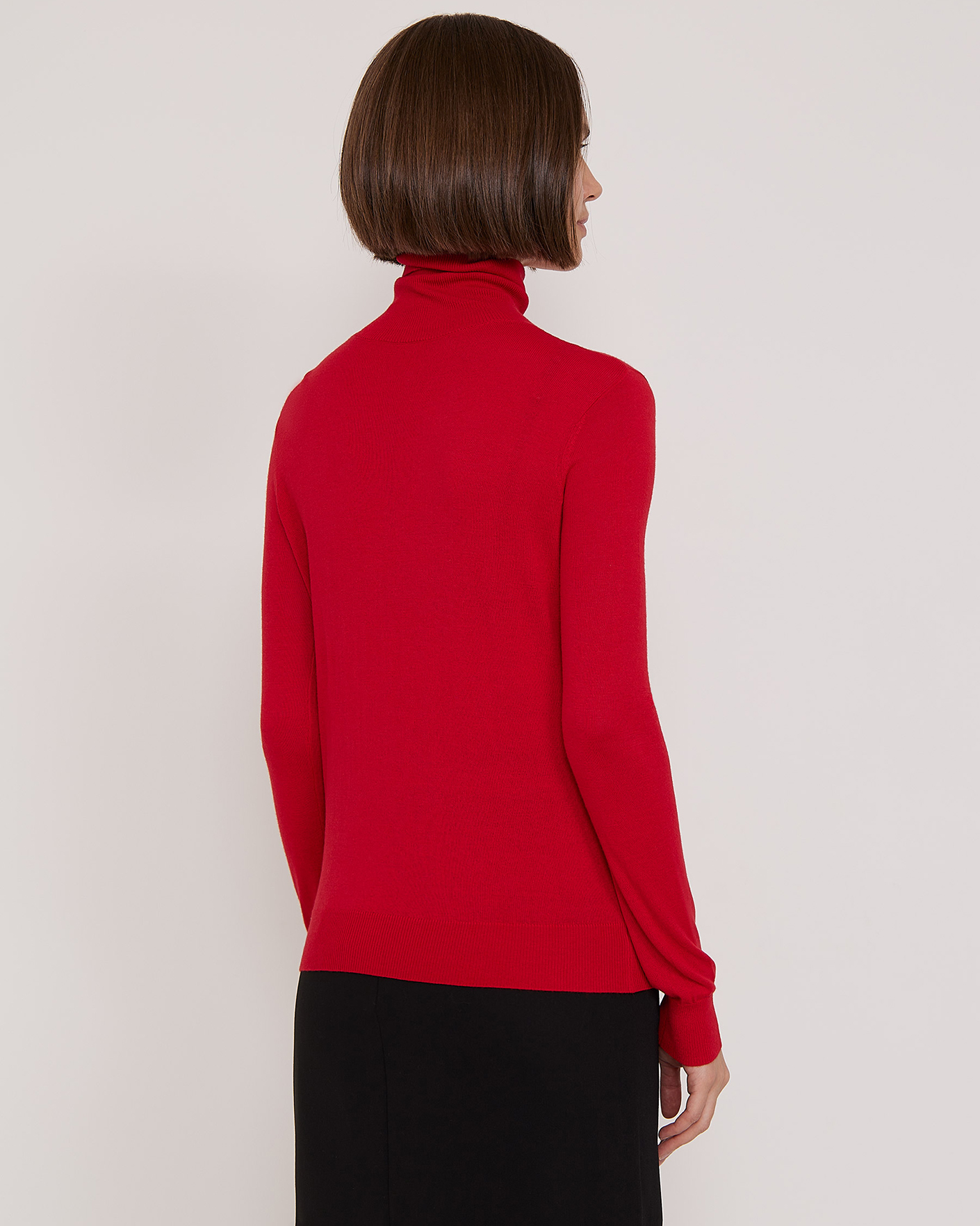Свитер Emka красного цвета в строчный рисунок. Модель с двойным воротником-стойка, манжетами и низом на тонкой резинке. Свитер можно сочетать с жилетом, жакетом, кардиганом, юбкой и брюками.
