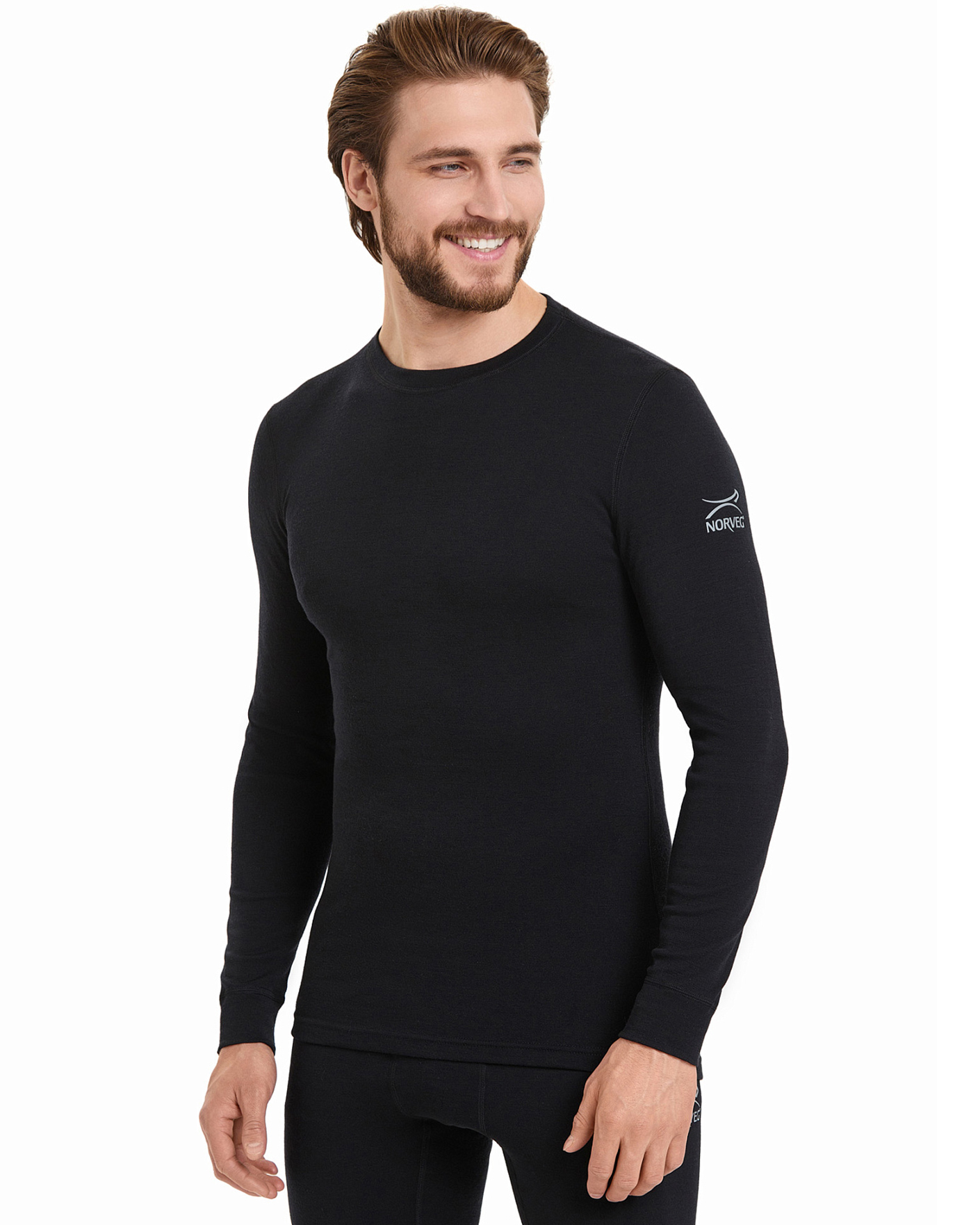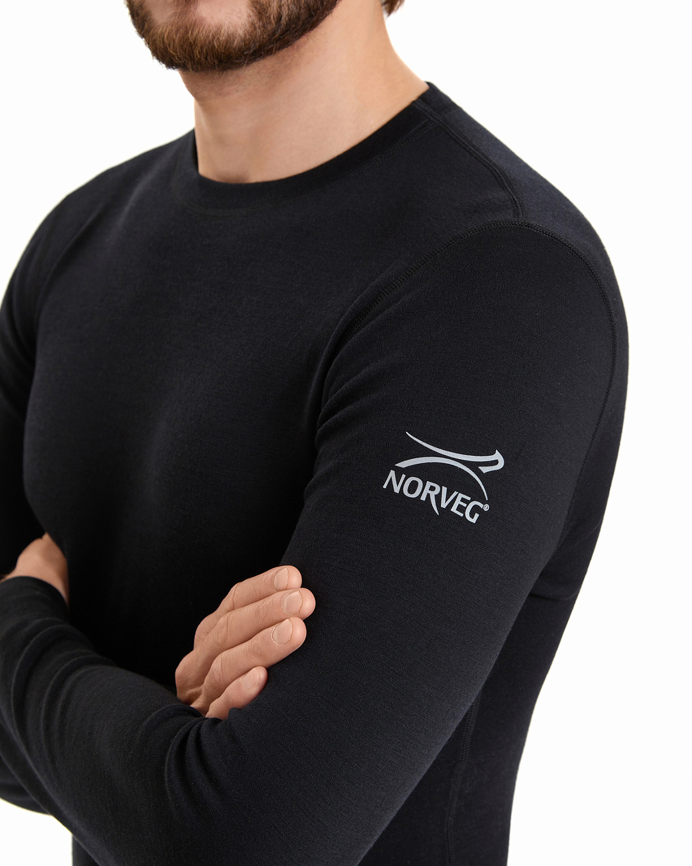 Термофутболка Norveg черного цвета выполнена из 100% шерсти. Модель облегающего кроя, с длинными рукавами и круглым вырезом. Подойдет тем, кто проводит много времени на свежем воздухе при низких температурах.
