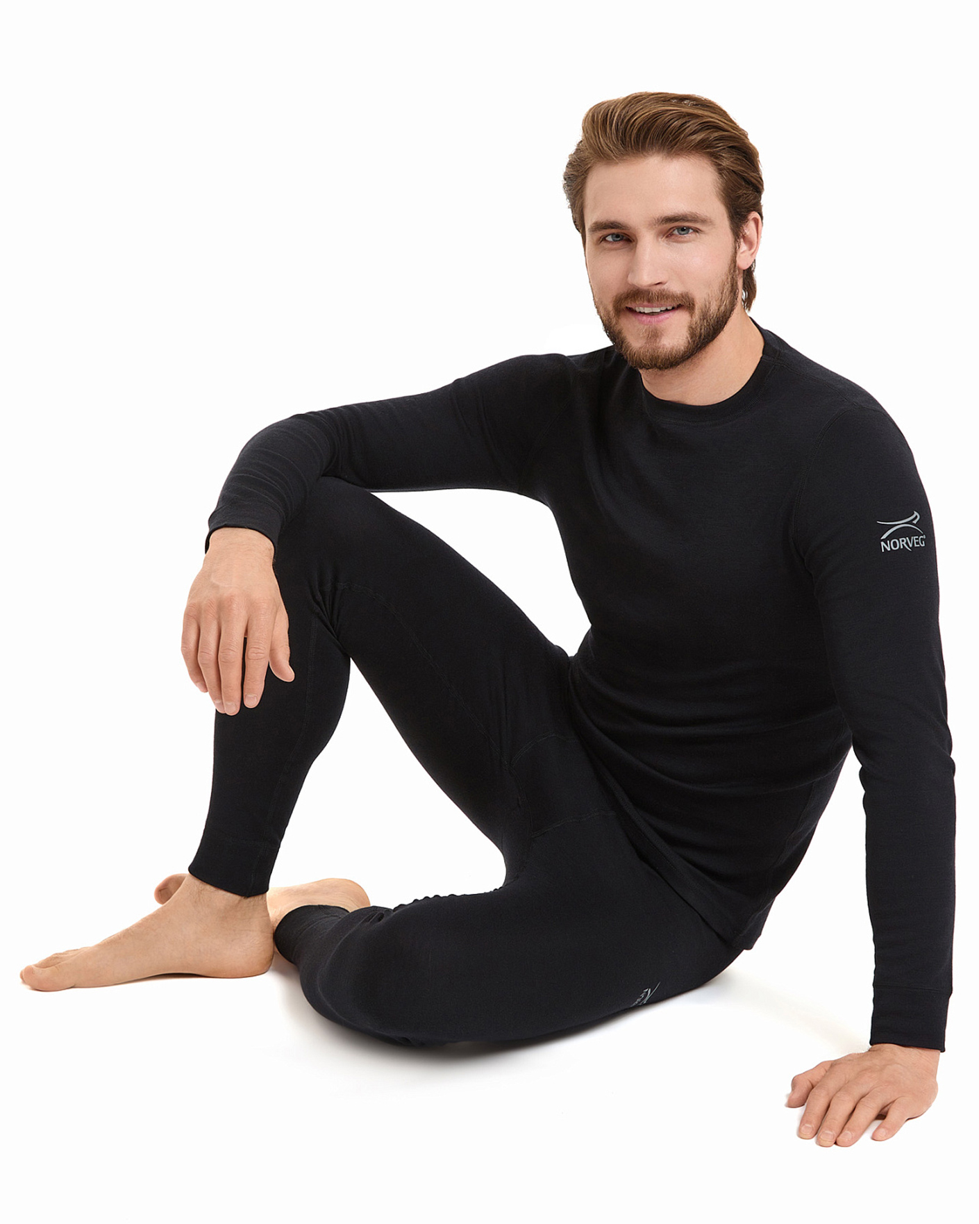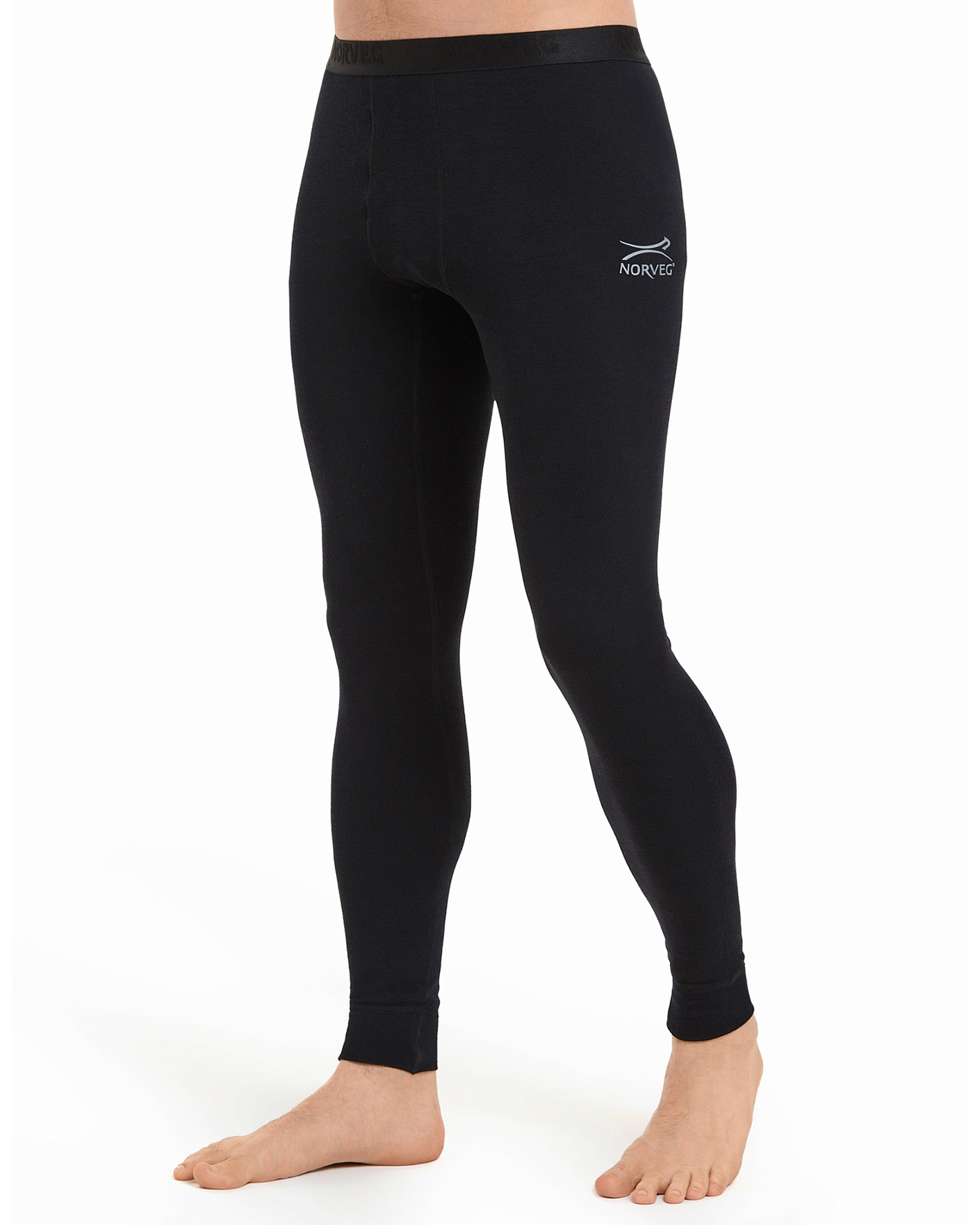 Термокальсоны Norveg черного цвета выполнены из 100% шерсти. Модель имеет анатомический крой, они плотно облегают ноги и бедра и абсолютно незаметны под одеждой. Кальсоны отлично подходят для ежедневной носки зимой и в межсезонье.