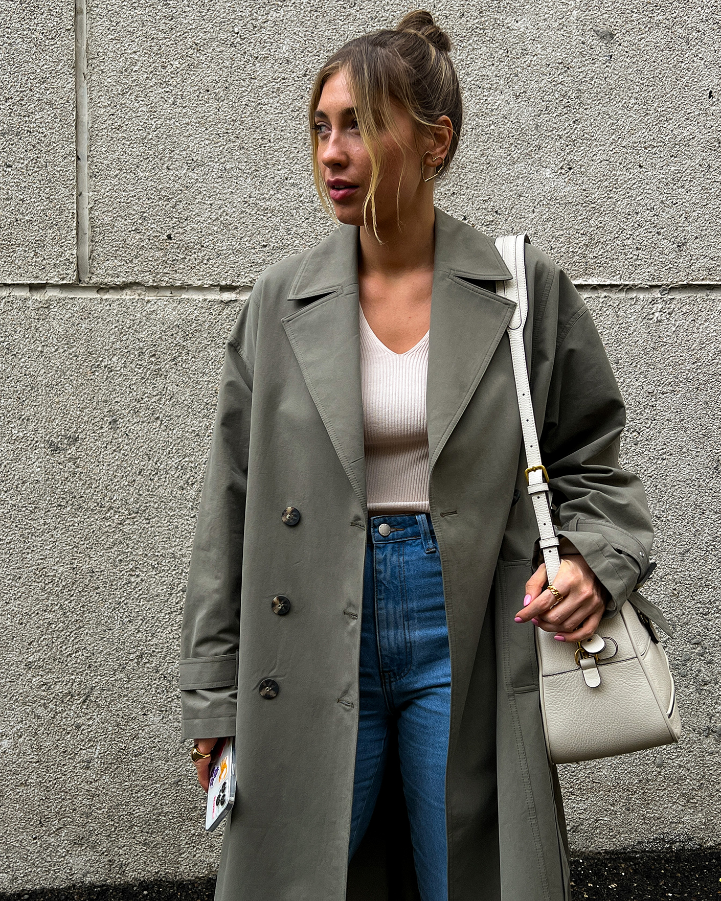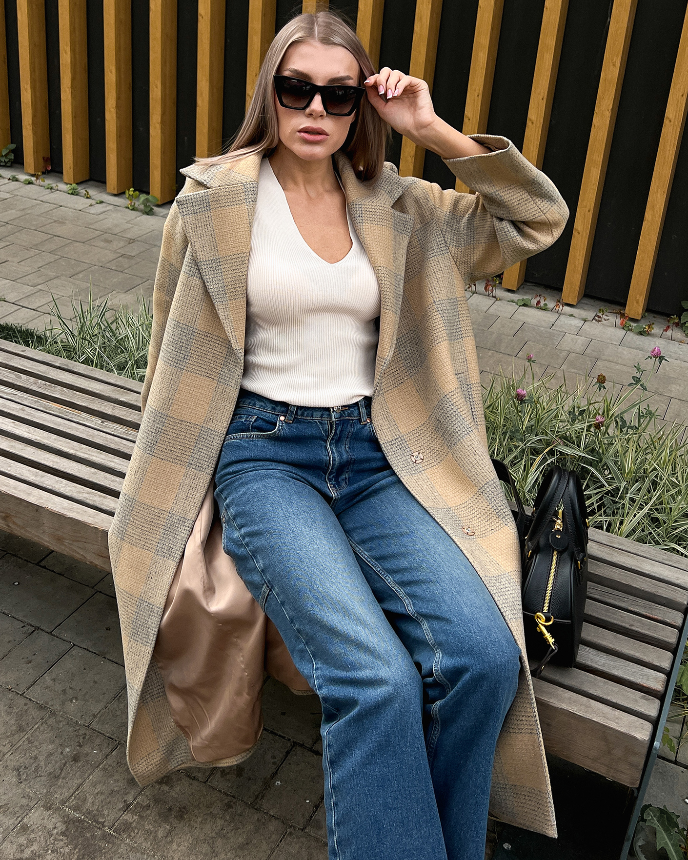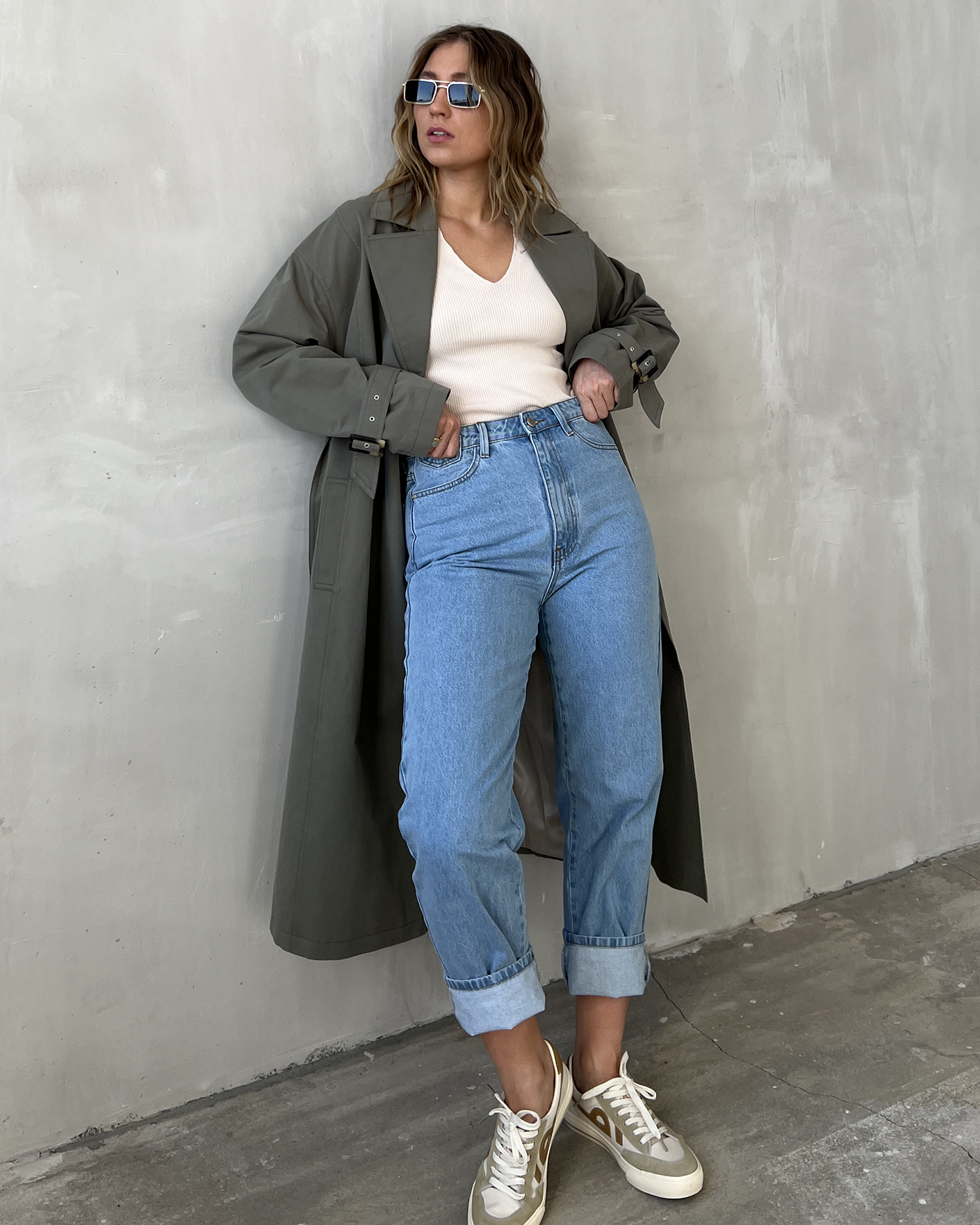 Стильный образ от Emka: плащ-тренчкот, майка, джинсы Добавлено в избранное Смотреть все