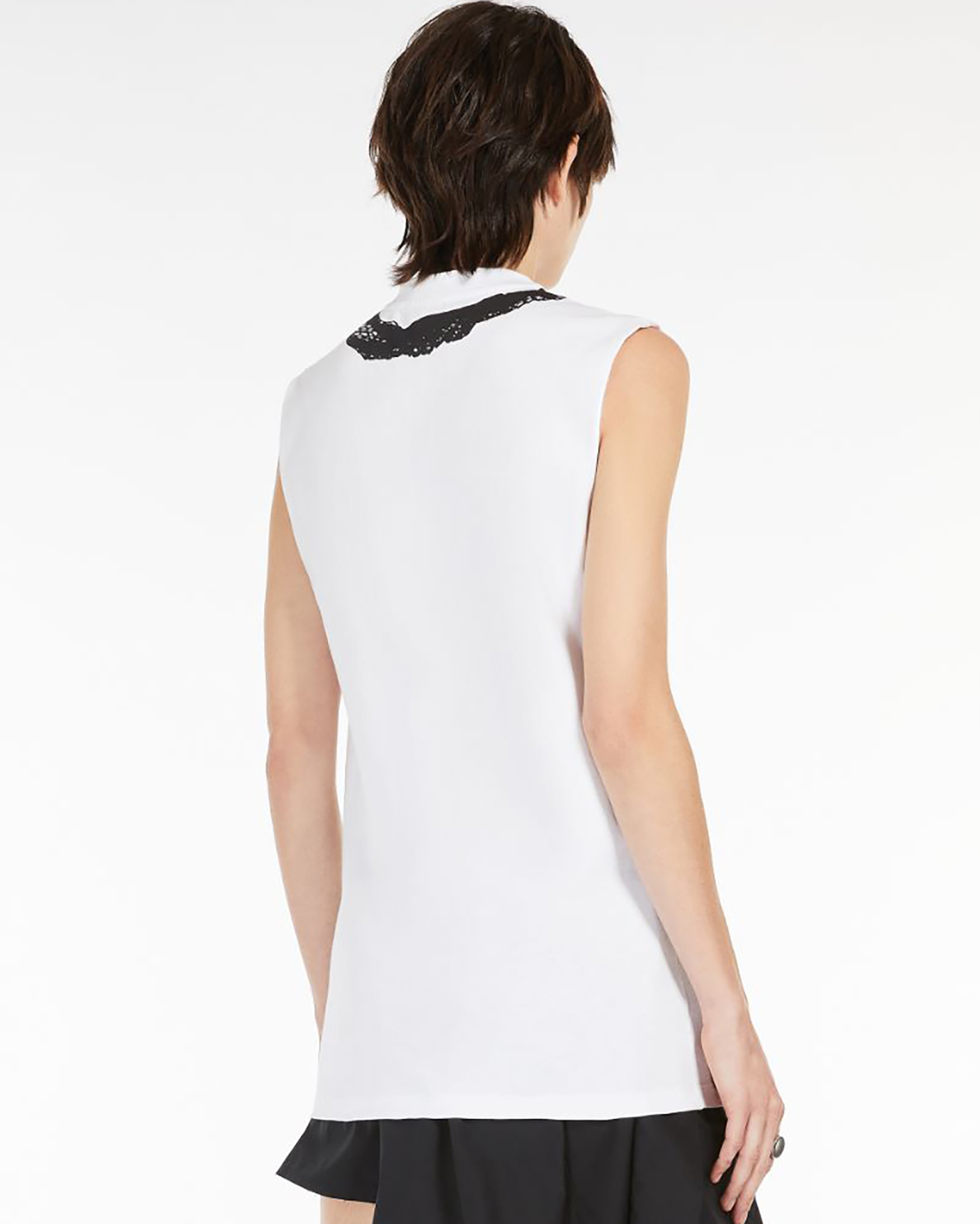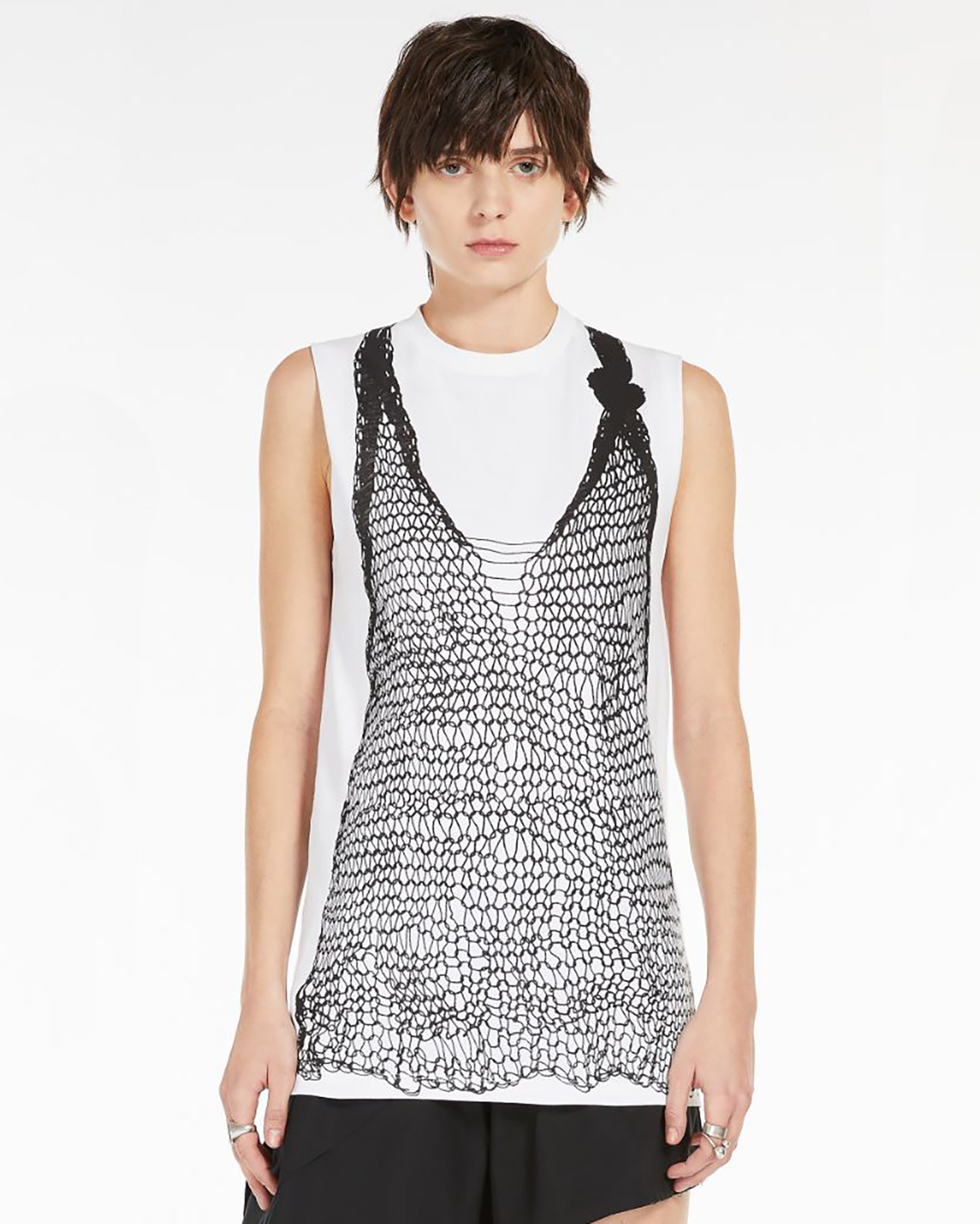 Майка Sportmax белого цвета с контрастным принтом в виде сетчатой майки. Модель из 100% хлопка, круглый вырез, без рукавов. Стильная майка отлично впишется в ваш гардероб.