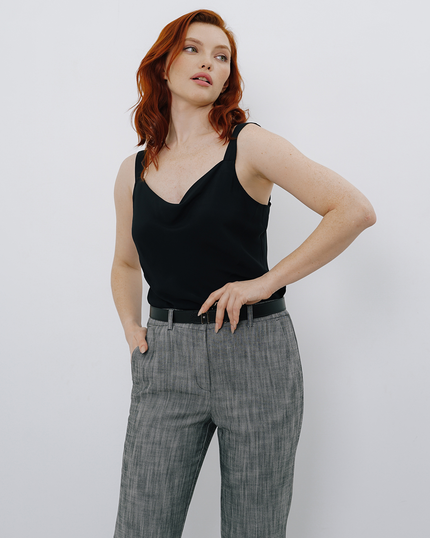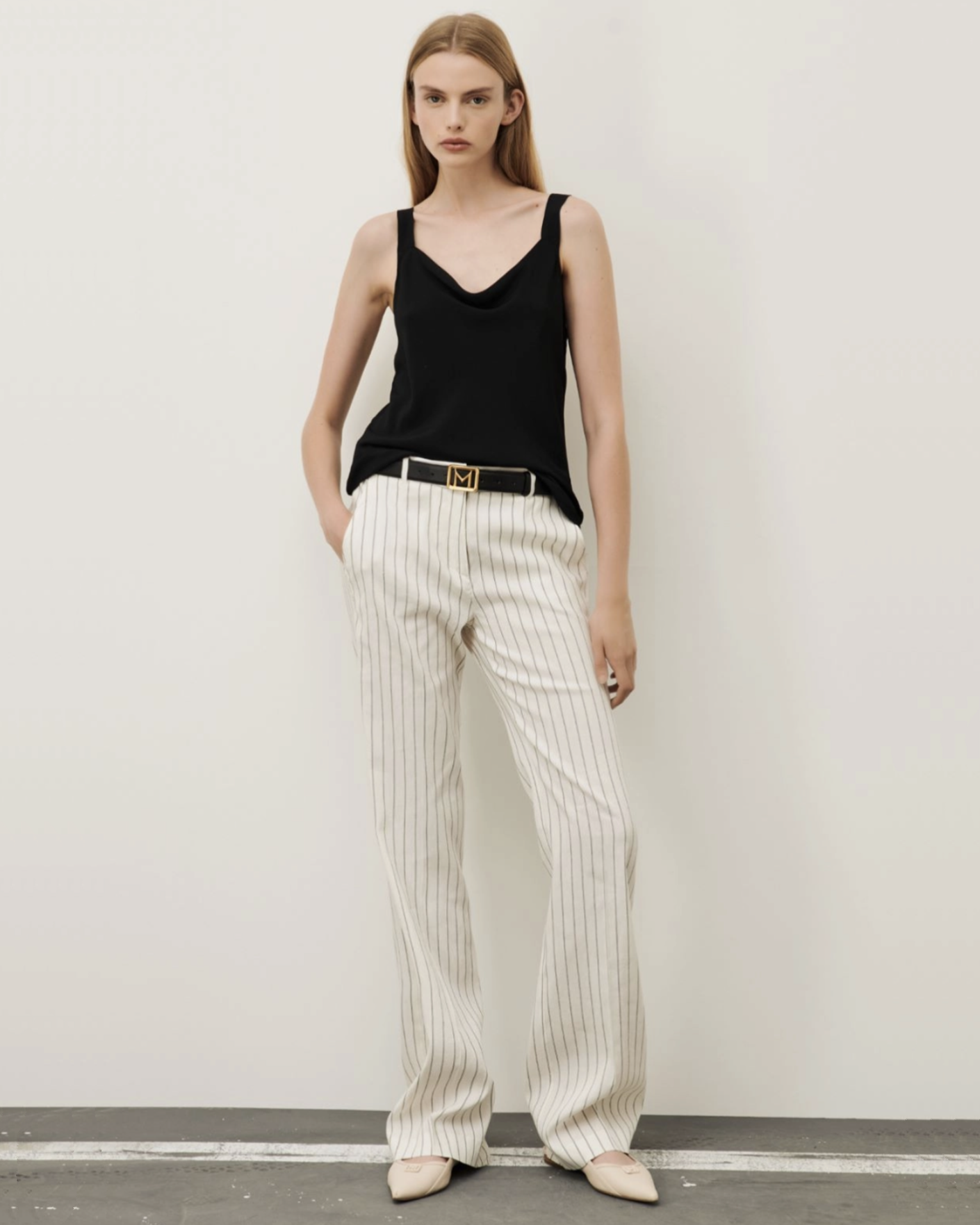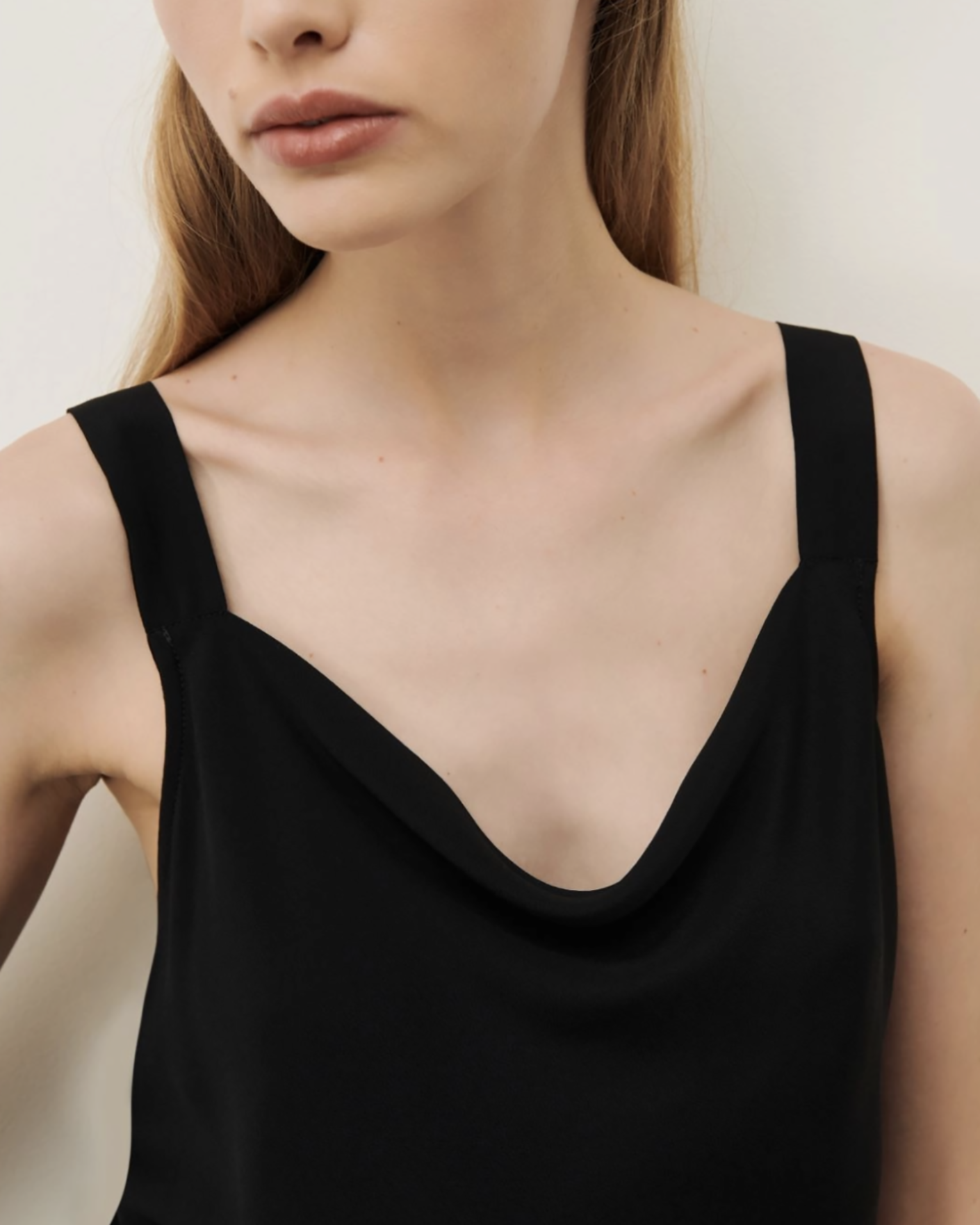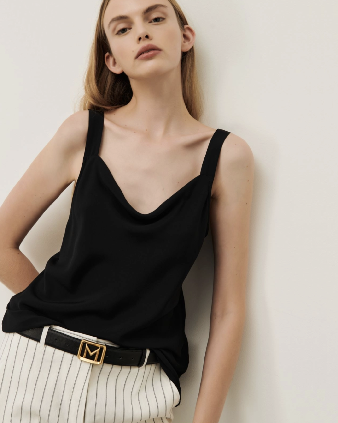 Приталенный топ Marella черного цвета. Модель на широких лямках, V-образный вырез спереди и прямоугольный сзади. Стильный топ отлично впишется в ваш гардероб.