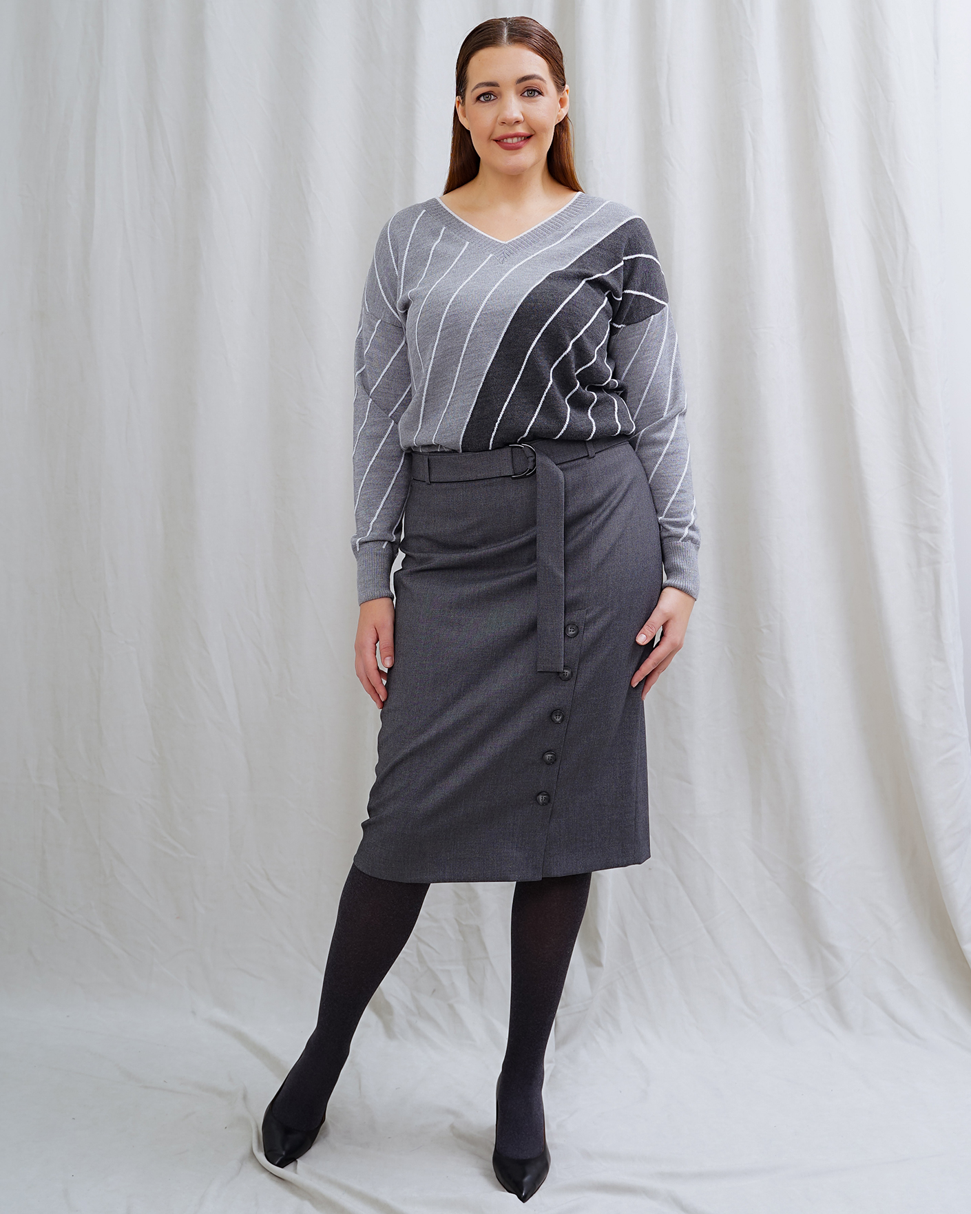 Классический образ для работы в офисе: пуловер, юбка-карандаш