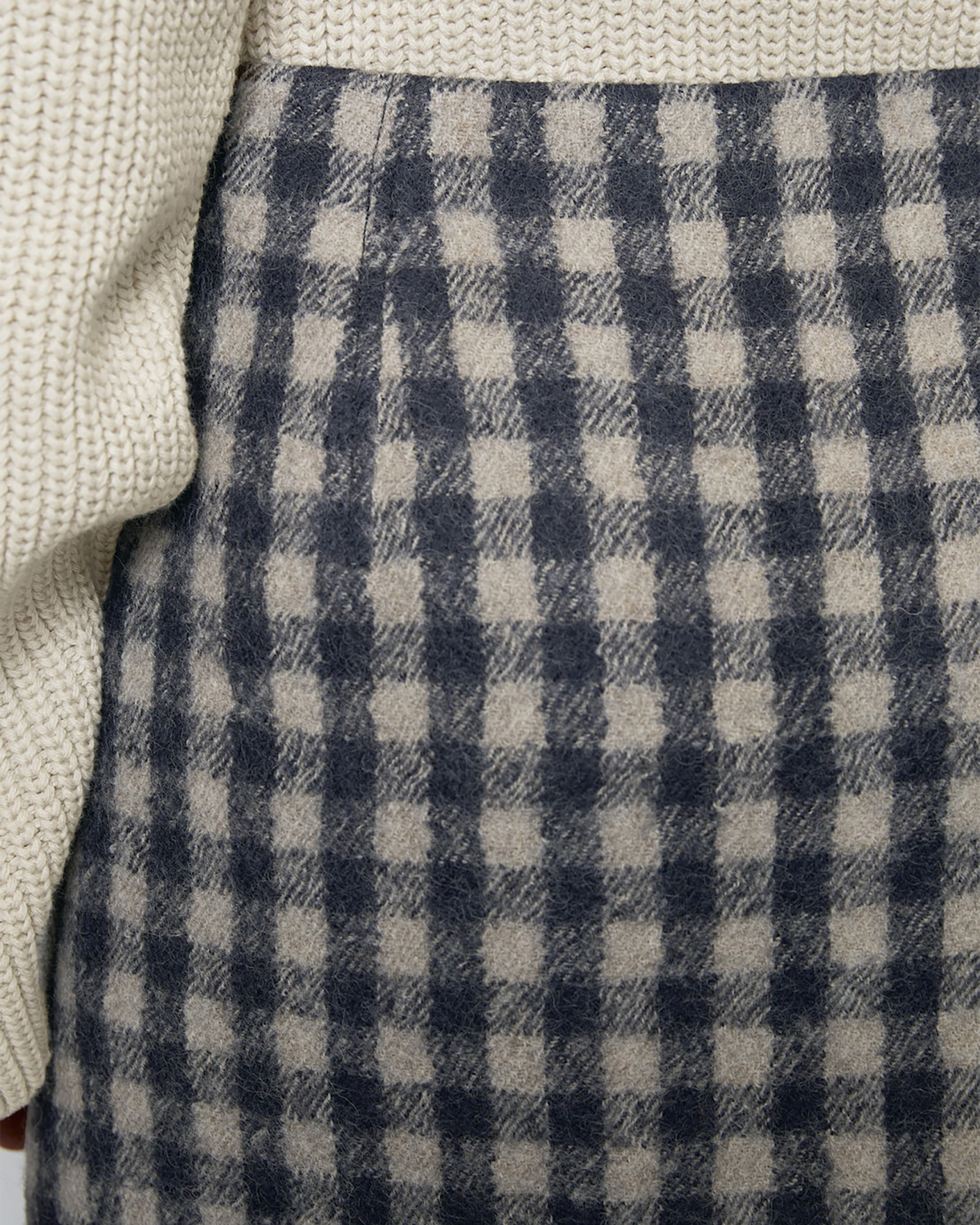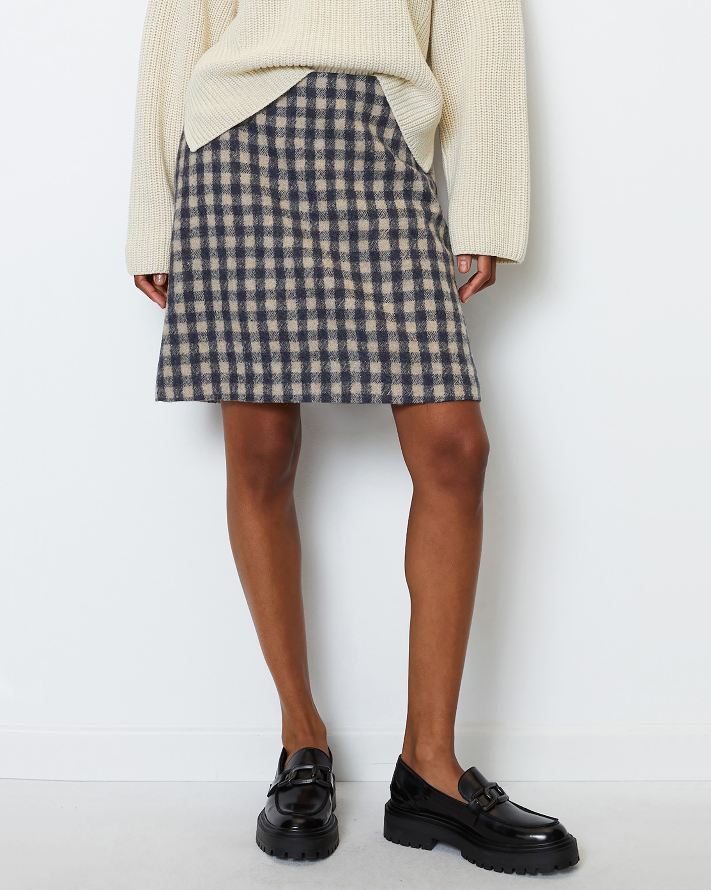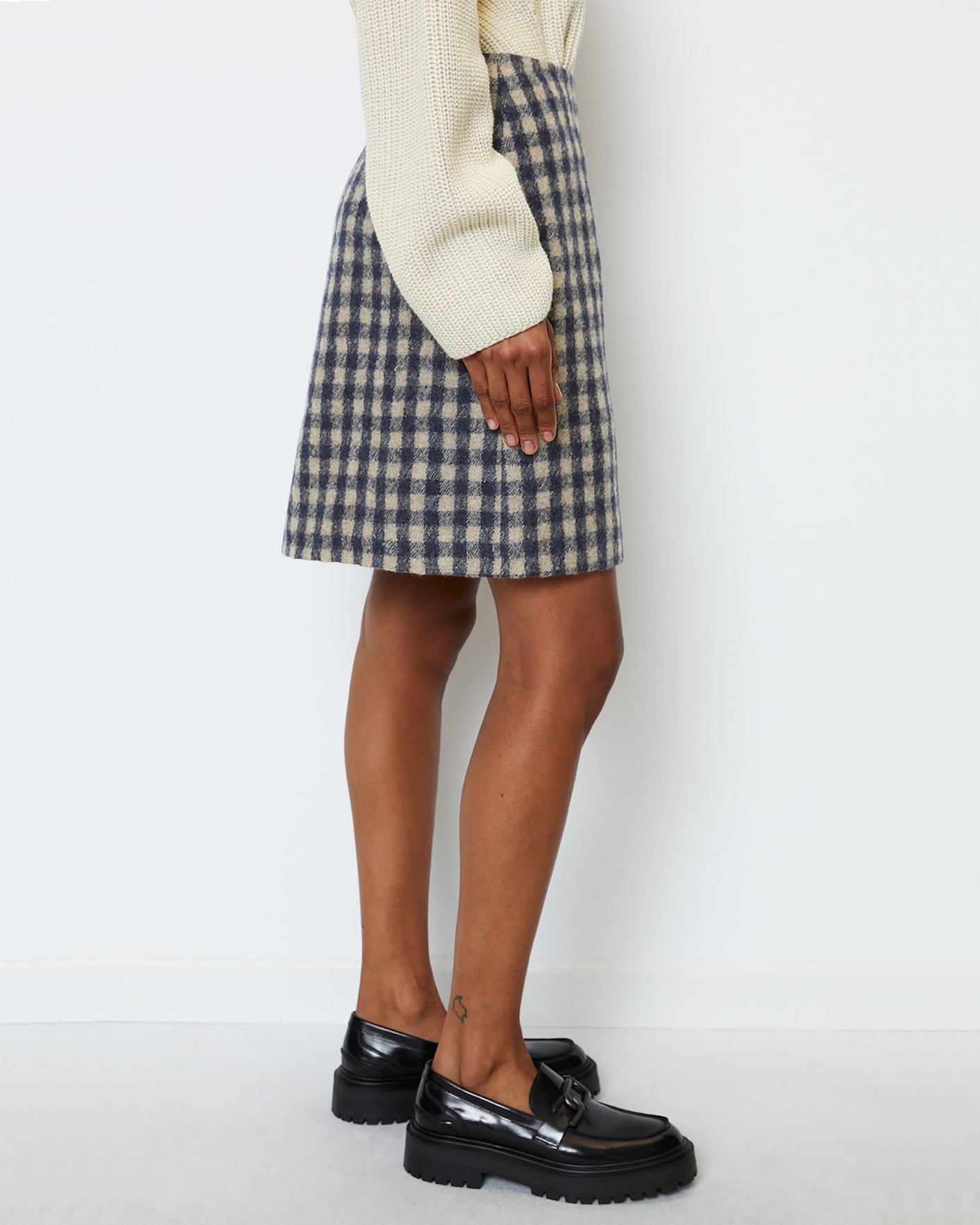 Стильная юбка Marc O'Polo бежево-синего цвета в клетку. Модель мини выполнена из 100% шерсти. Эластичный пояс обеспечивает максимальный комфорт. Юбка станет фаворитом вашего гардероба на каждый день.