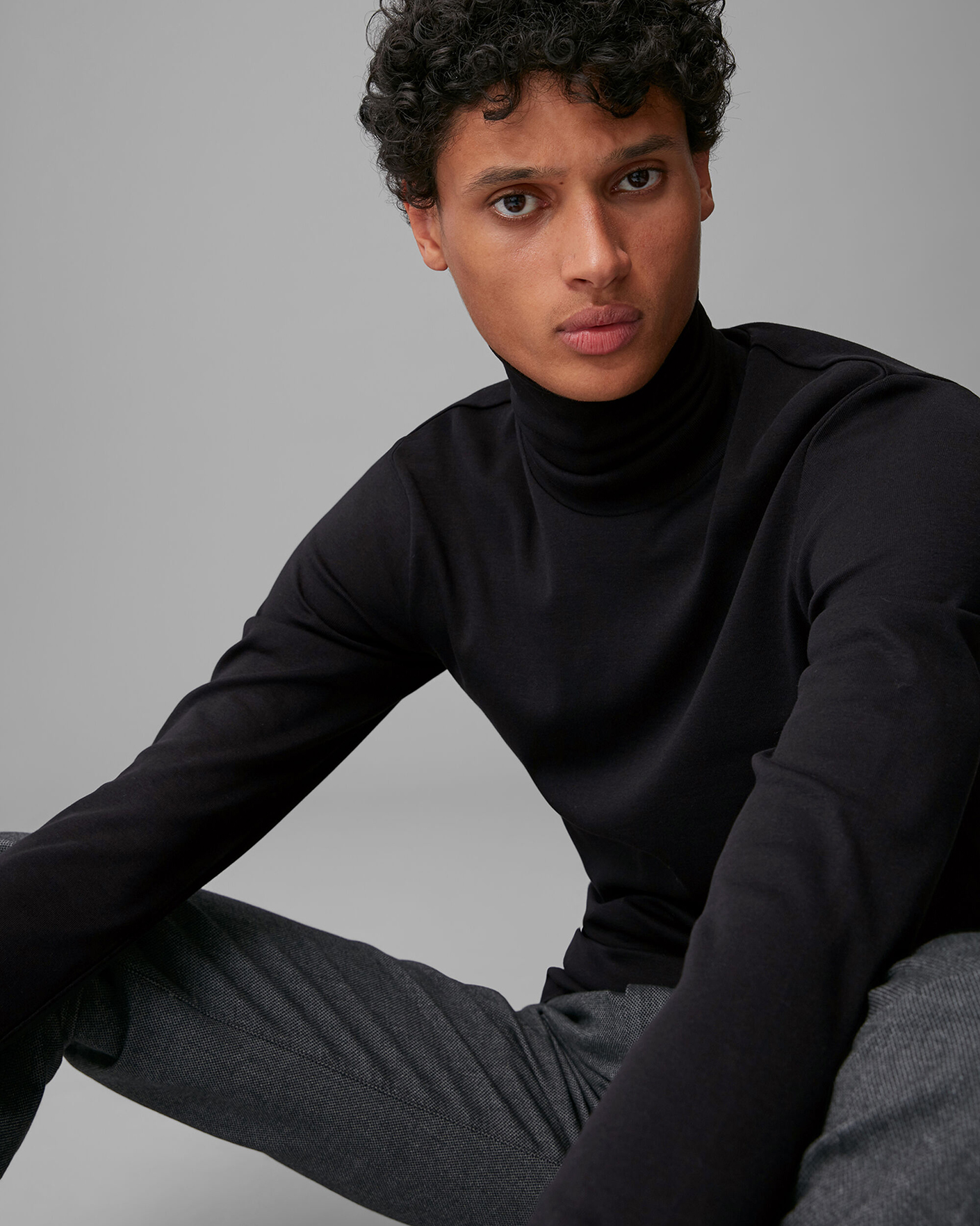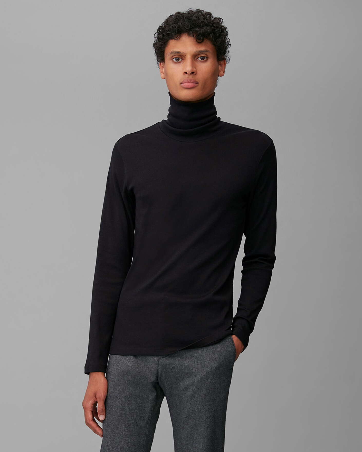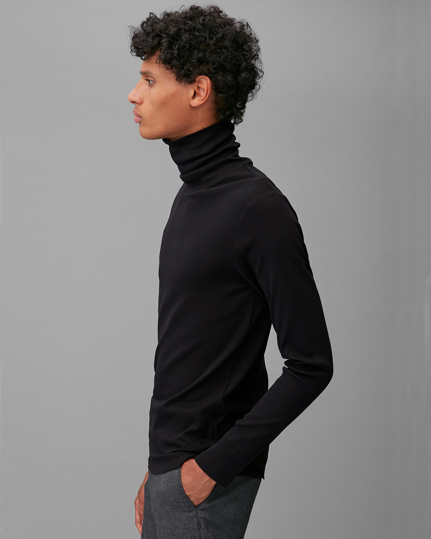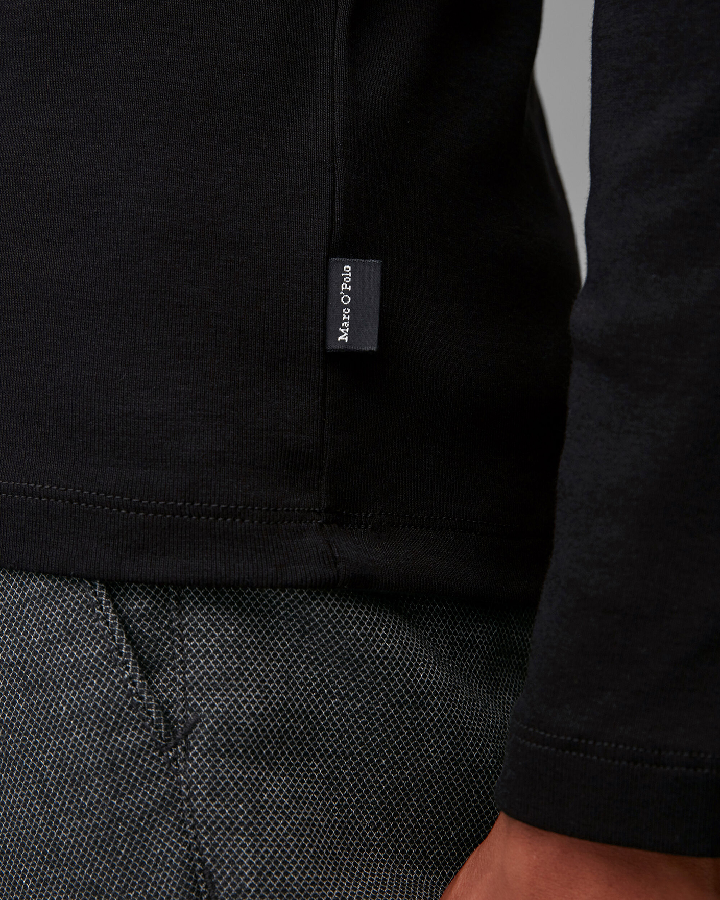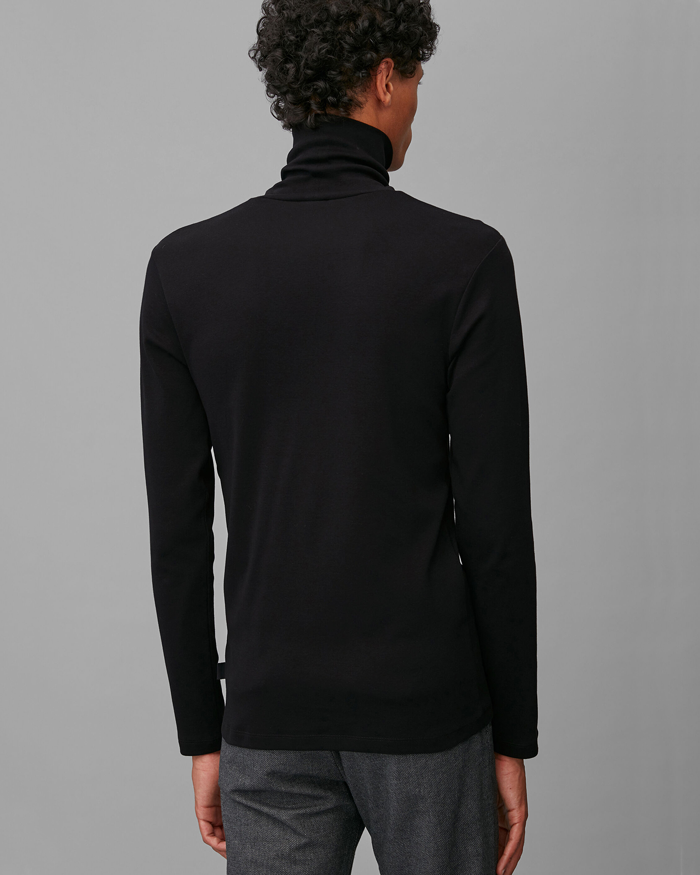 Водолазка Marc O'Polo черного цвета, выполненная из 100% хлопка. Простая, базовая модель с небольшим тканым логотипом снизу. Водолазку можно сочетать с джинсовой плотной рубашкой, пиджаком, брюками и джинсами.