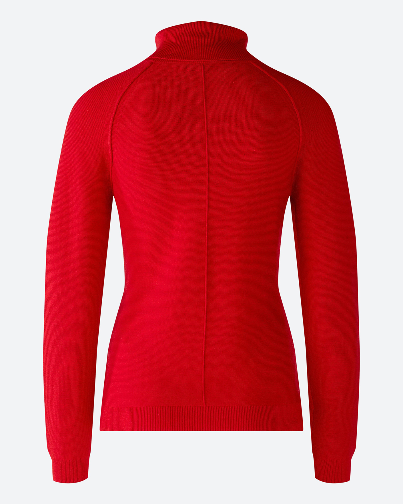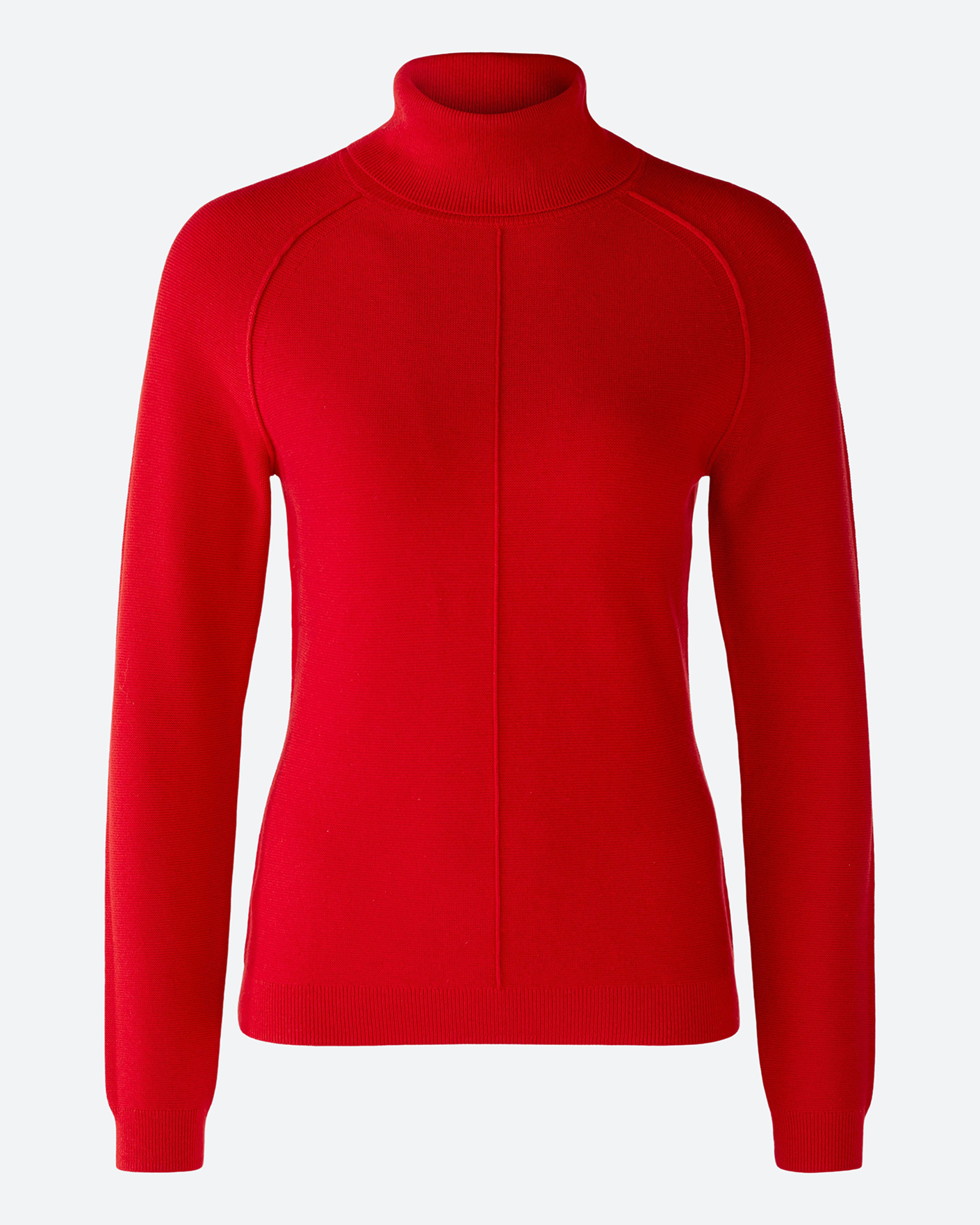 Полуприталенная водолазка OUI красного цвета в строчный рисунок. Модель с выделенными швами у плечей и по центру. Удлиненный воротник-стойка, манжеты и низ на тонкой резинке. Яркая водолазка отлично впишется в ваш гардероб.