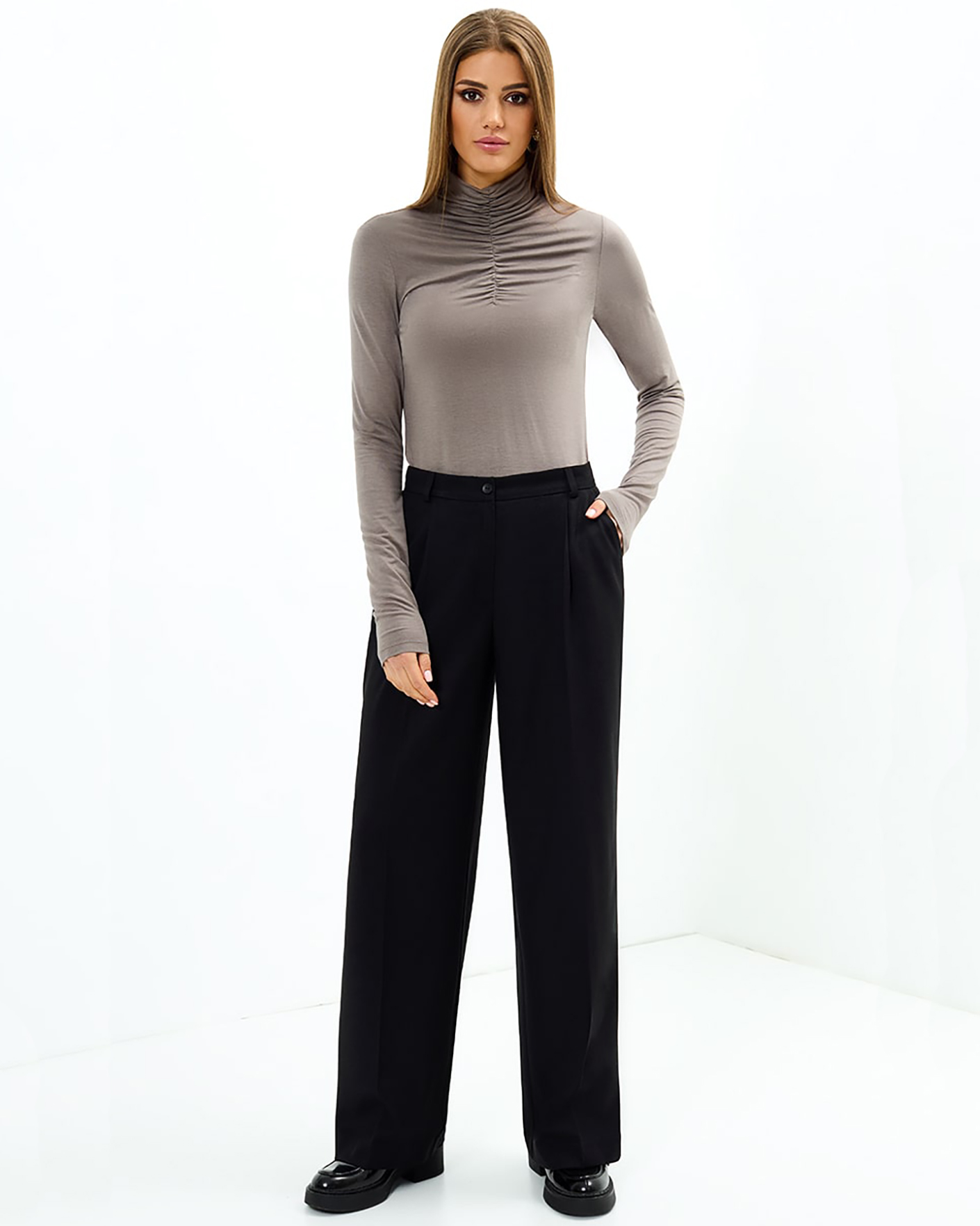 Приталенная водолазка Devita коричневого цвета. Модель с удлиненным воротником и аккуратной сборкой по центру. Водолазку можно сочетать с жилетом, жакетом, кардиганом, пуловером, юбкой и брюками.