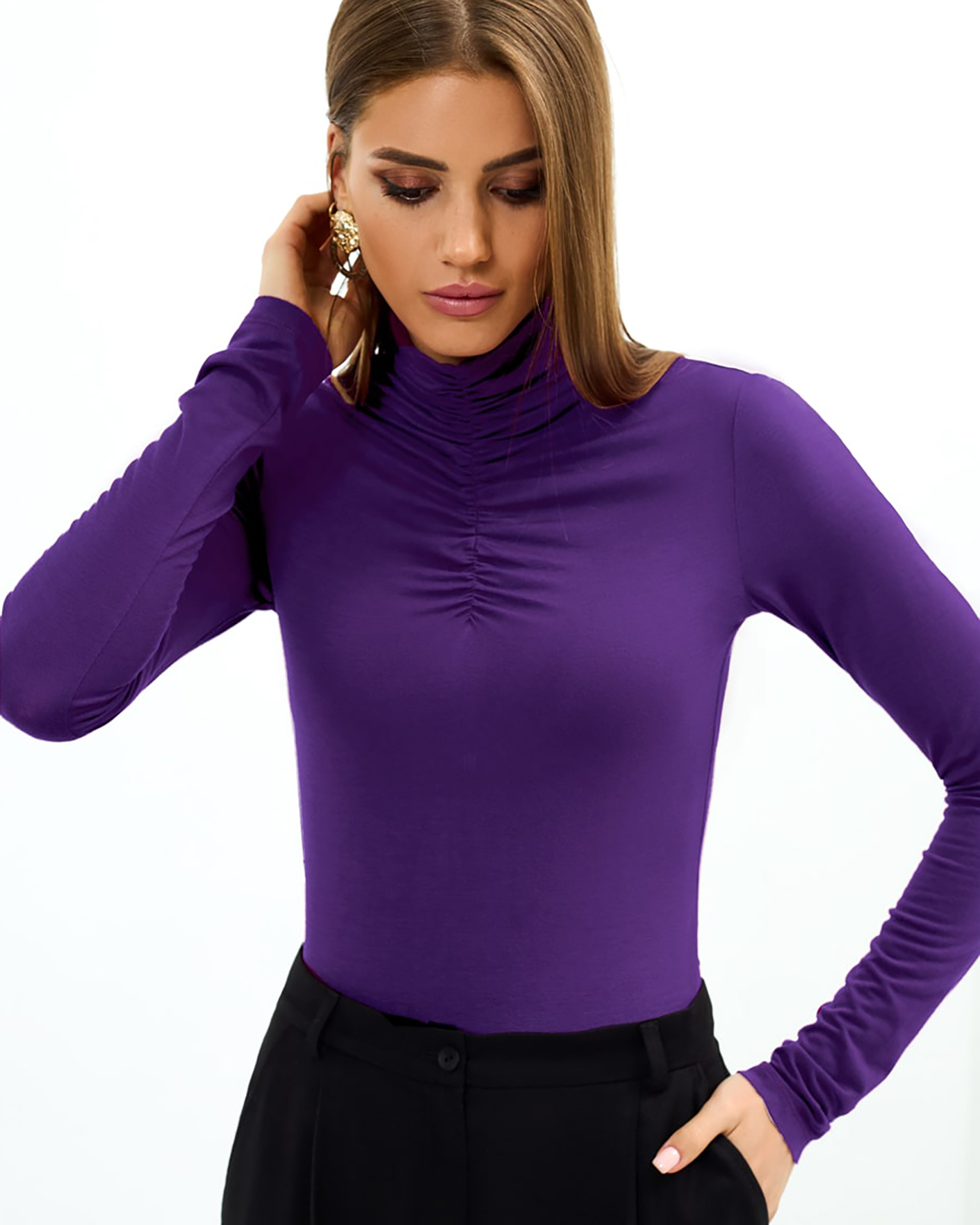 Приталенная водолазка Devita фиолетового цвета. Модель с удлиненным воротником и аккуратной сборкой по центру. Водолазку можно сочетать с жилетом, жакетом, кардиганом, пуловером, юбкой и брюками.