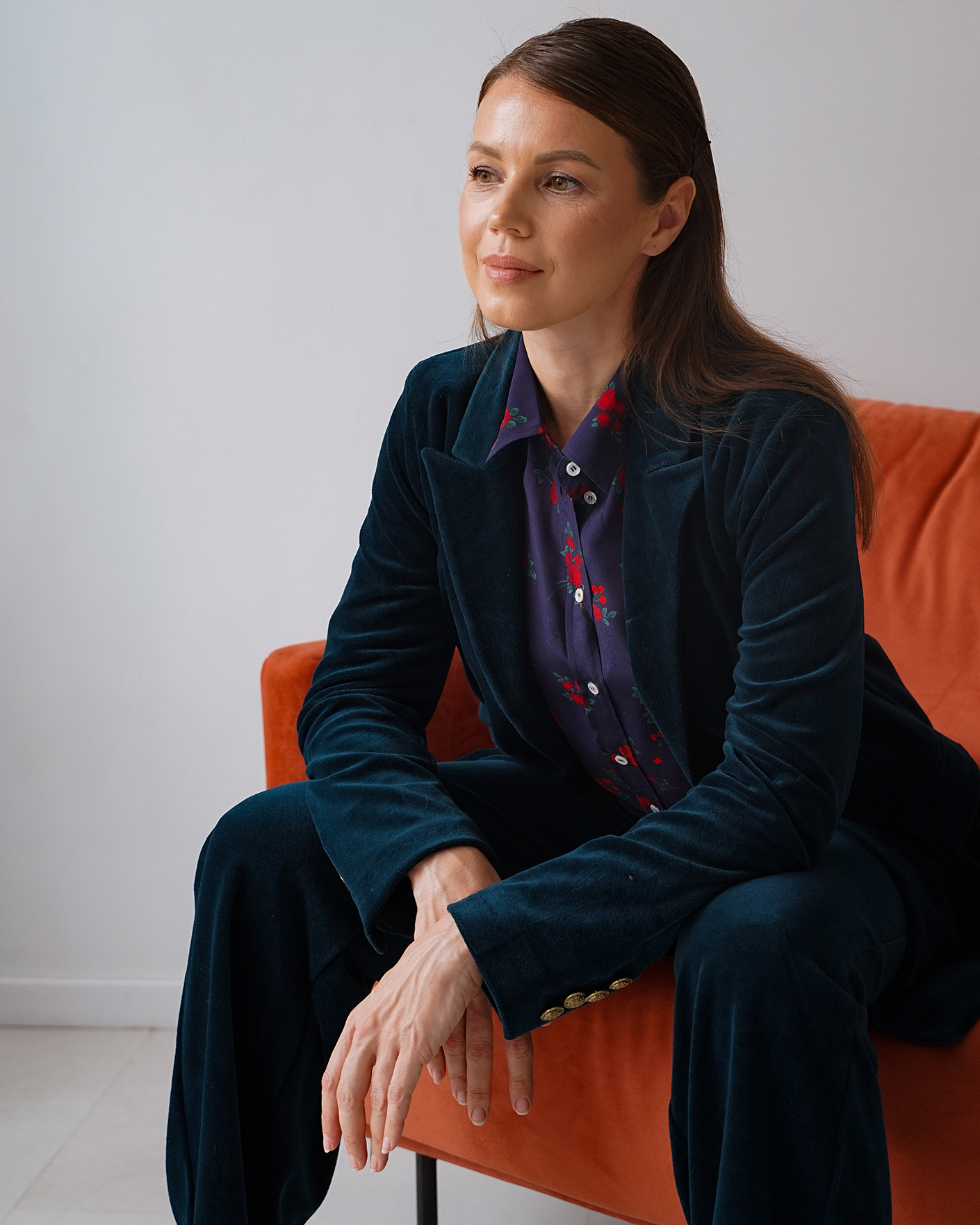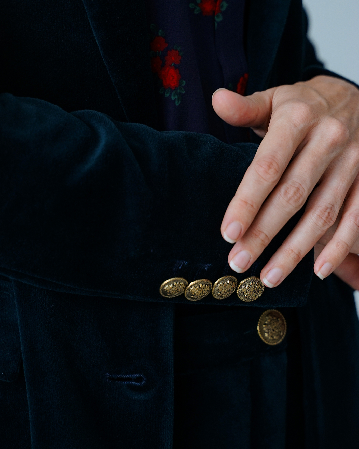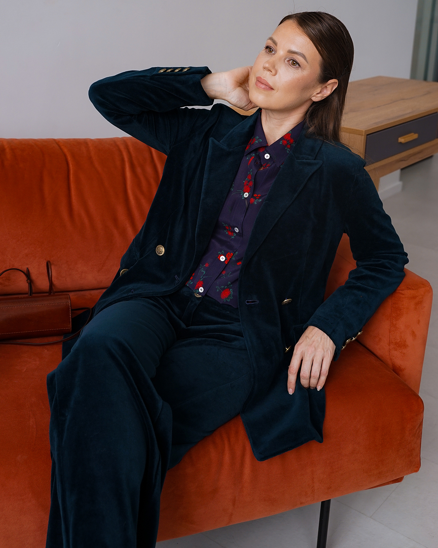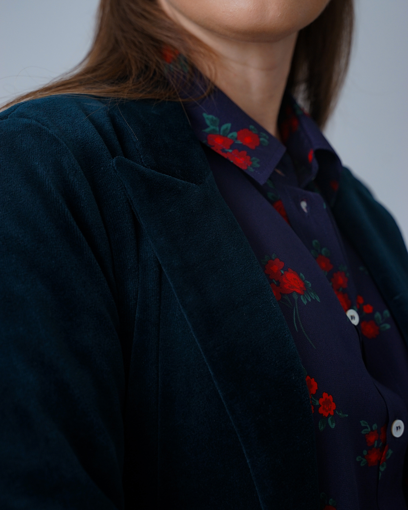 Двубортный блайзер Marella темно-зеленого цвета. Хлопковая модель с заостренными лацканами, застежак на четре пуговицы, имеются врезные карманы с клапанами по бокам. Блайзер можно сочетать с топом, футболкой, рубашкой, блузой, водолазкой, юбкой и брюками.