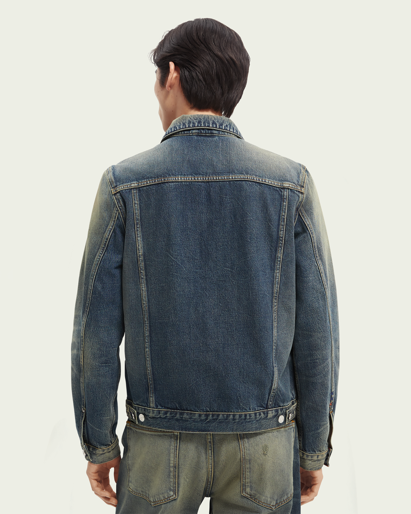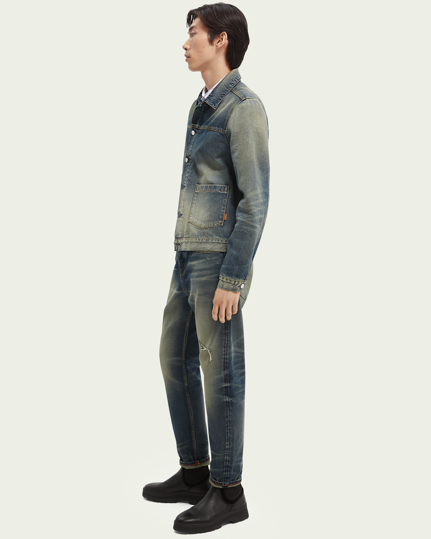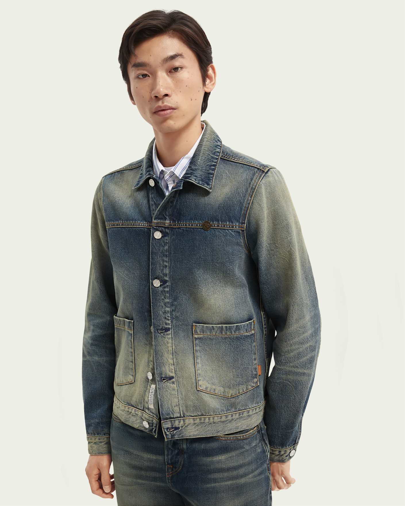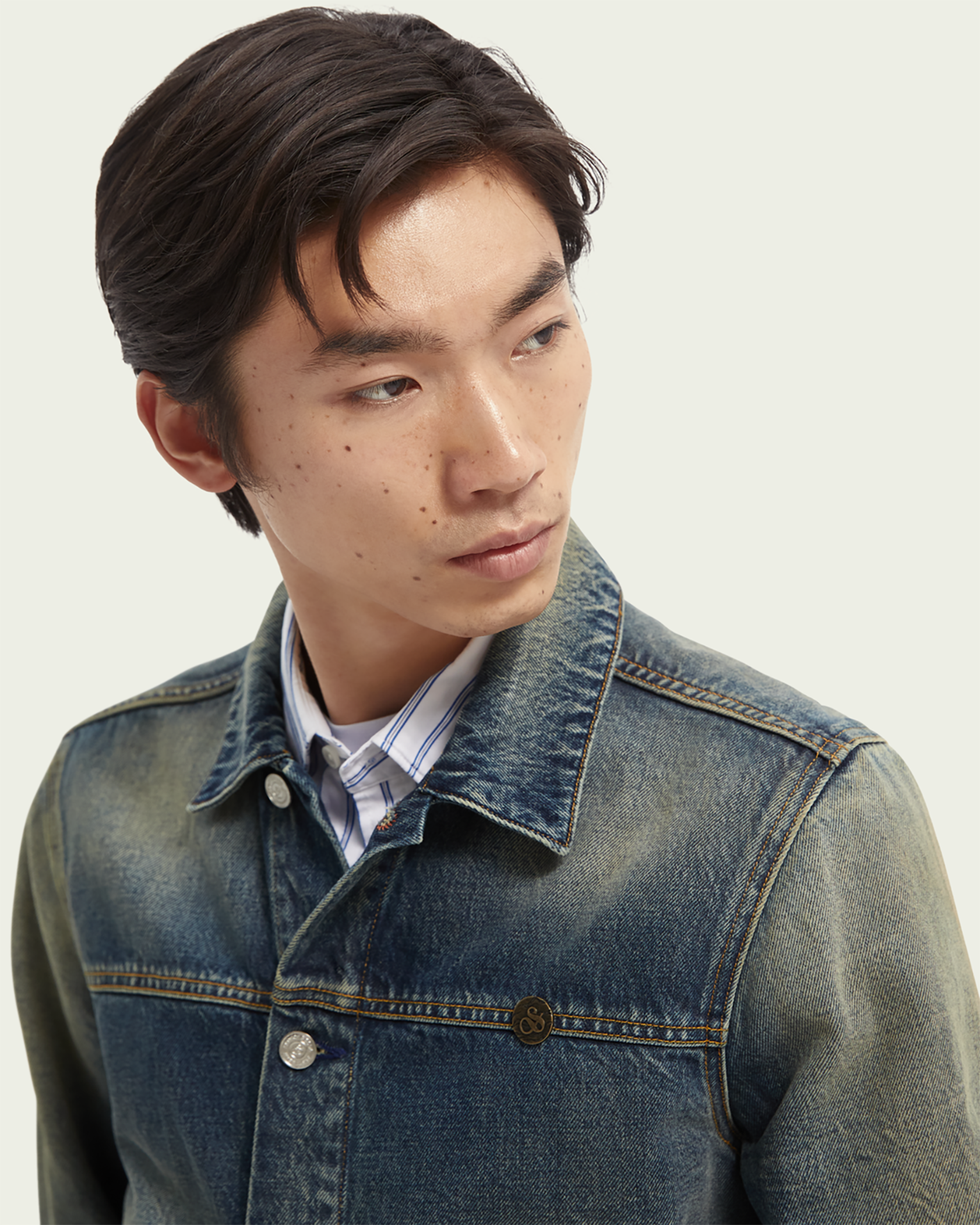 Джинсовая куртка Scotch&Soda серо-бежевого цвета с потертостями выполнена из 100% хлопка. Модель с отложным воротником и планкой на металлические пуговицы. Имеются накладные карманы по бокам и шлейки по бокам длярегулирования ширины изделия. Джинсовая куртка - универсальная вещь вашего гардероба на каждый день.