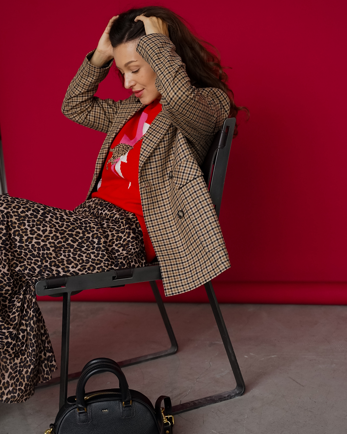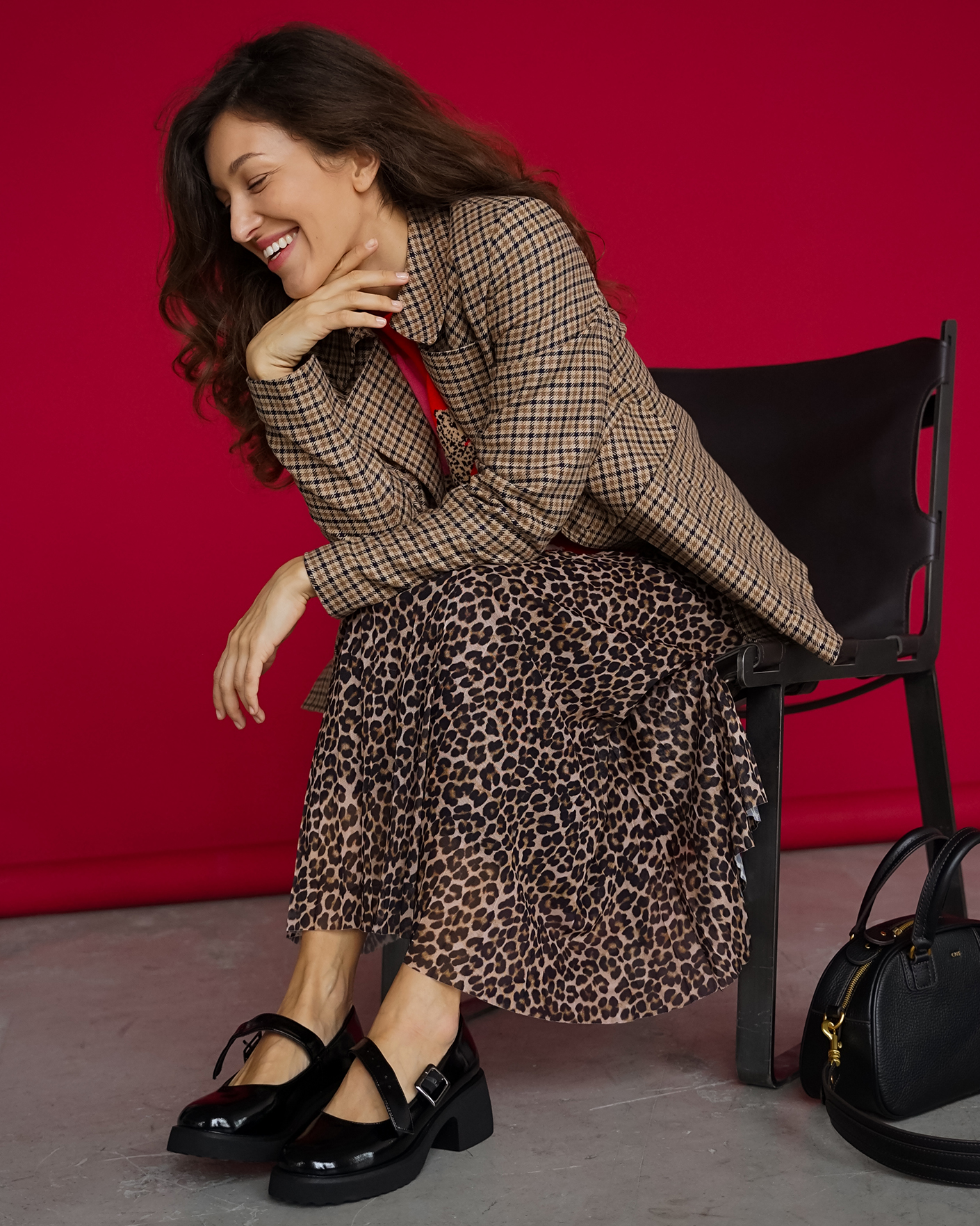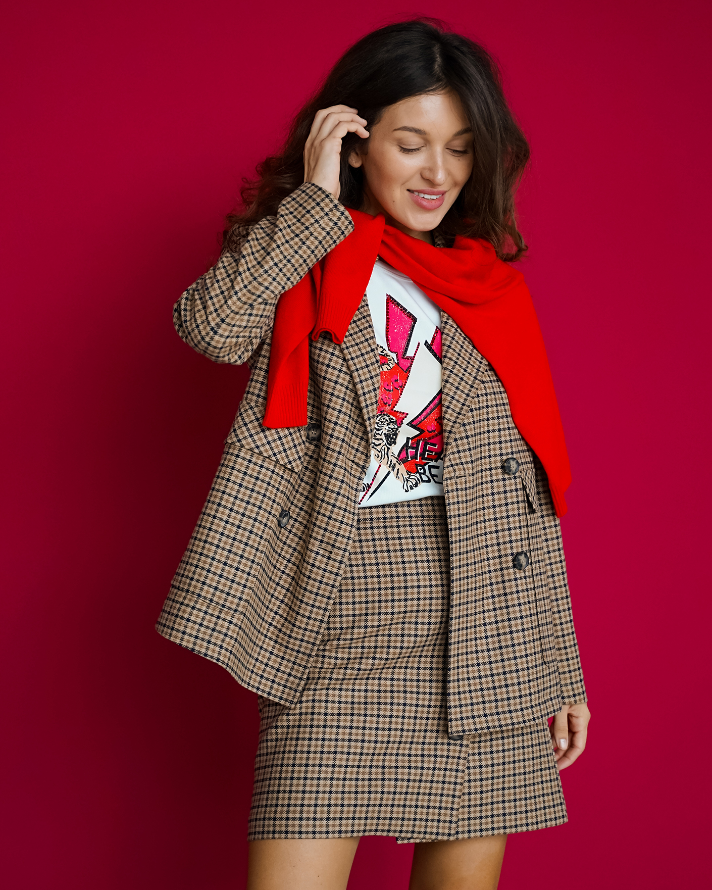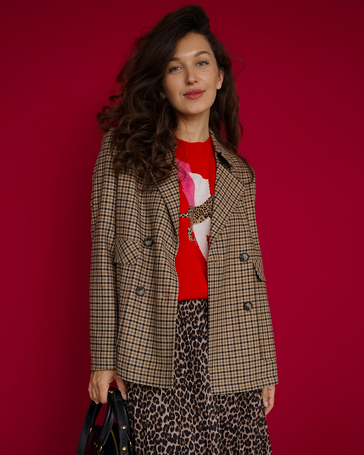 Двубортный жакет-бушлат OUI серо-бежевого цвета в мелкий рисунок гусиные лапки. Модель полуприталенного кроя, широкие лацканы, застежка на четыре пуговицы. Имеются врезные карманы с клапанами по бокам. Стильный жакет-бушлат станет фаворитом вашего гардероба.