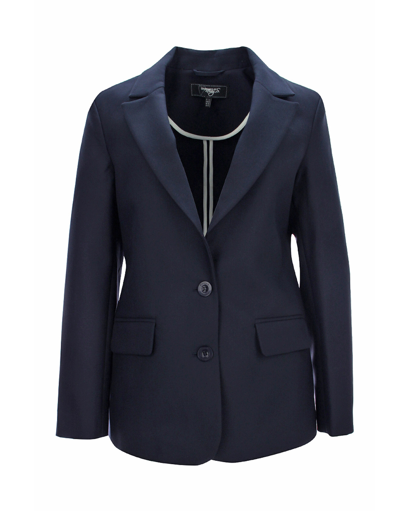 Полуприталенный жакет Kenny S. темно-синего цвета. Модель с лацканами и застежкой на две пуговицы. Имеются врезные карманы с клапанами по бокам. Жакет можнно сочетать с футболкой, тонкой водолазкой, рубашкой, джемпером, блузой, юбкой и брюками.