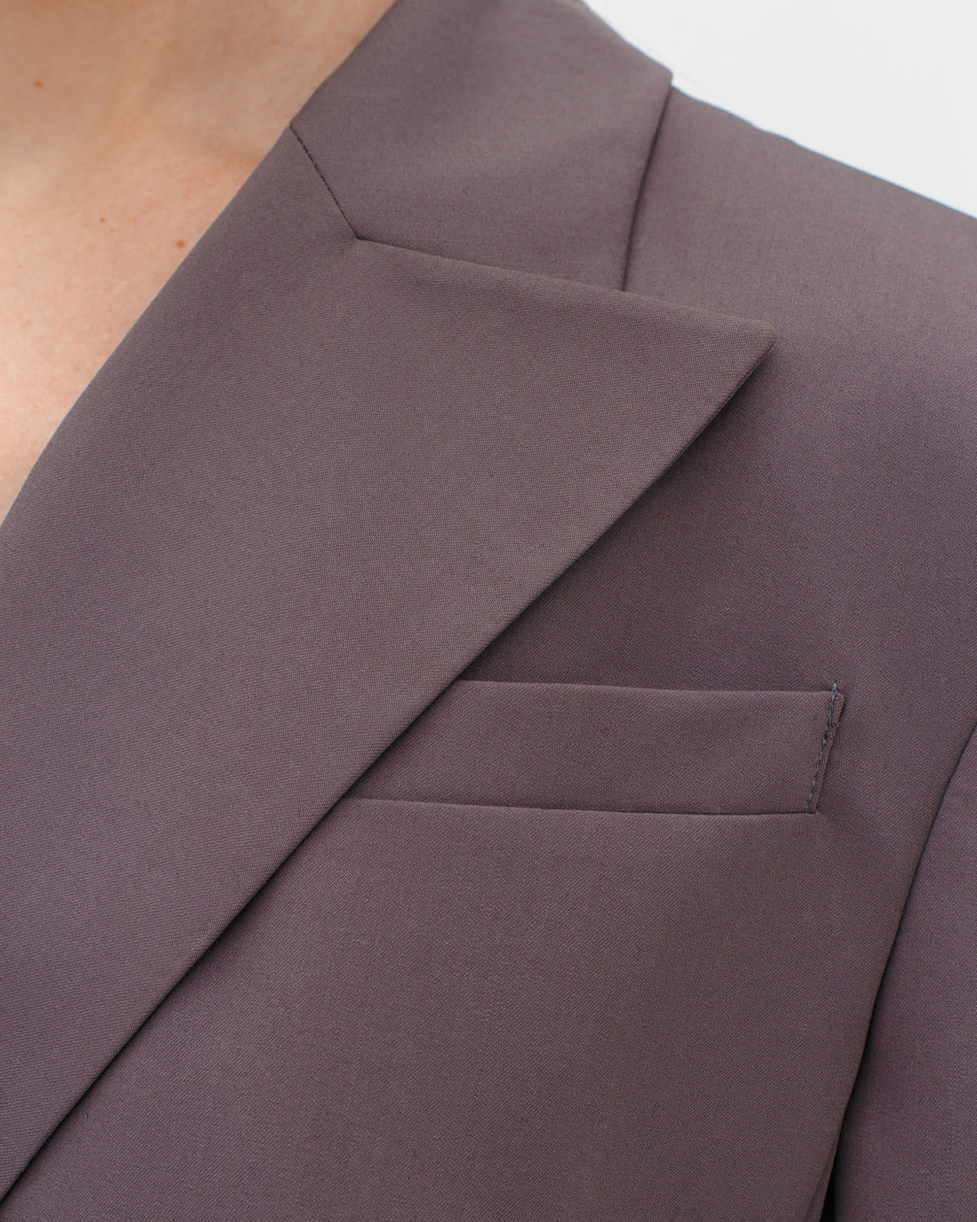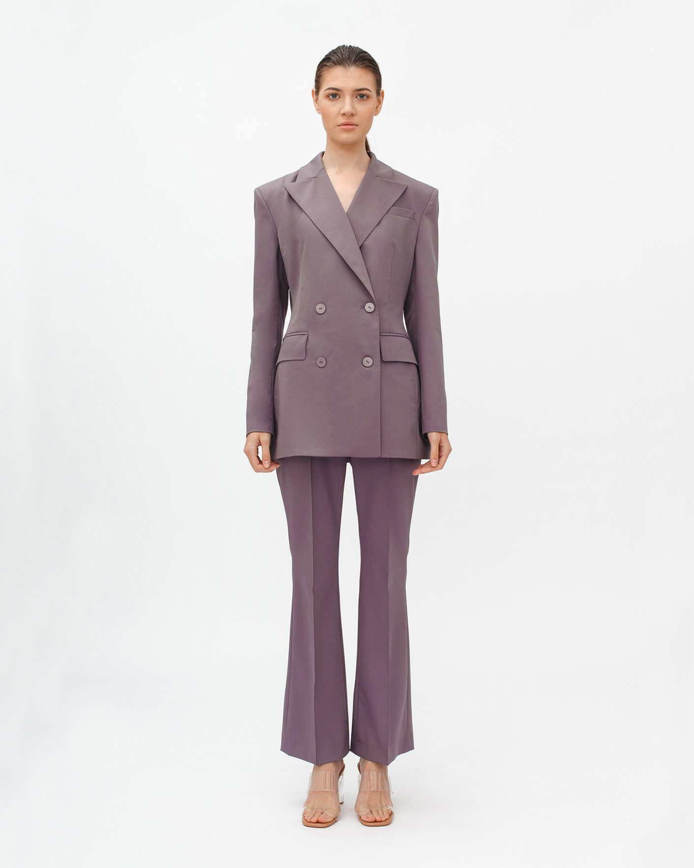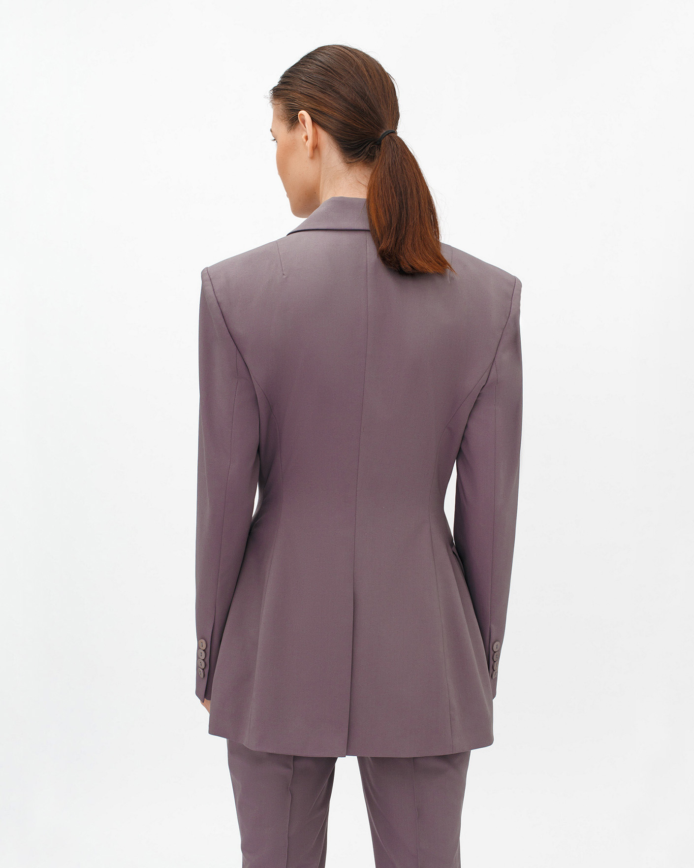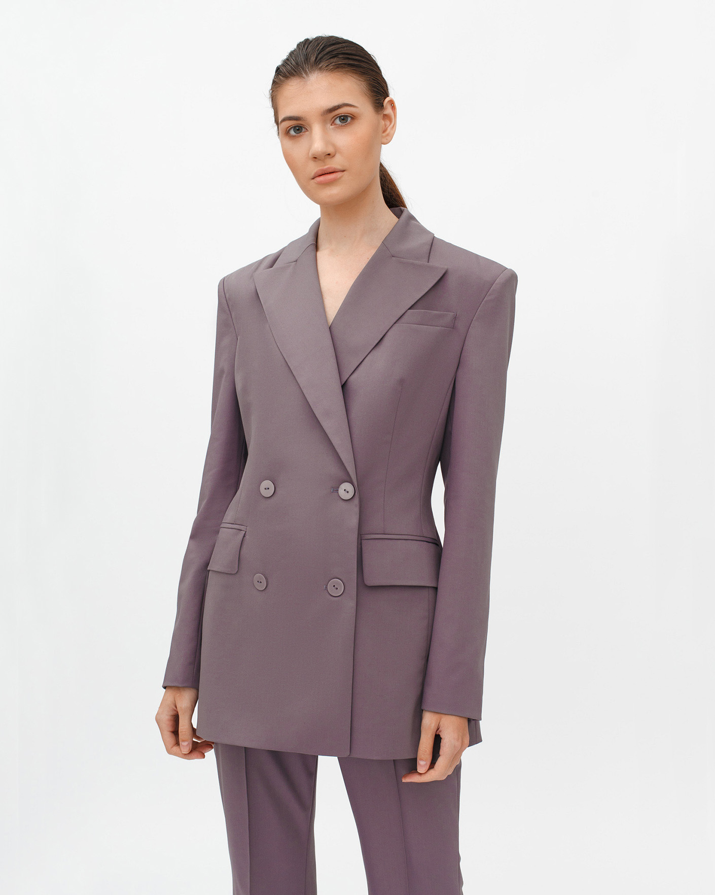 Двубортный жакет Cuvee серого цвета. Приталенная модель с заостренными лацканами, застежкой на четыре пуговицы. Имеются карманы с клапанами по бокам и на груди. Жакет можно сочетать с футболкой, топом, рубашкой, блузой, платьем, тонкой водолазкой, юбкой и брюками.