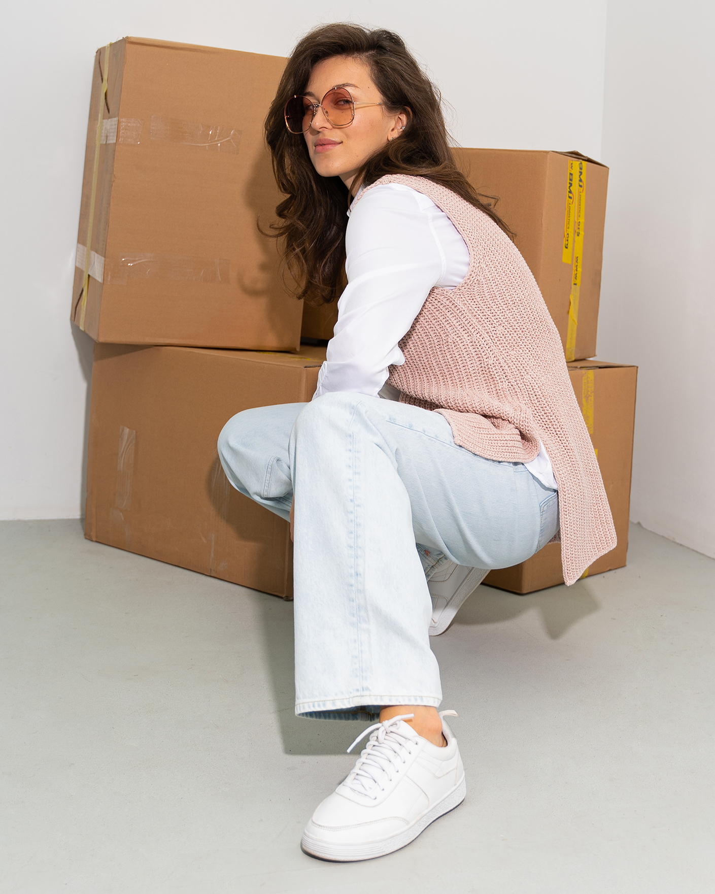 Идеальный образ для прогулок от OUI: жилет, футболка, шорты