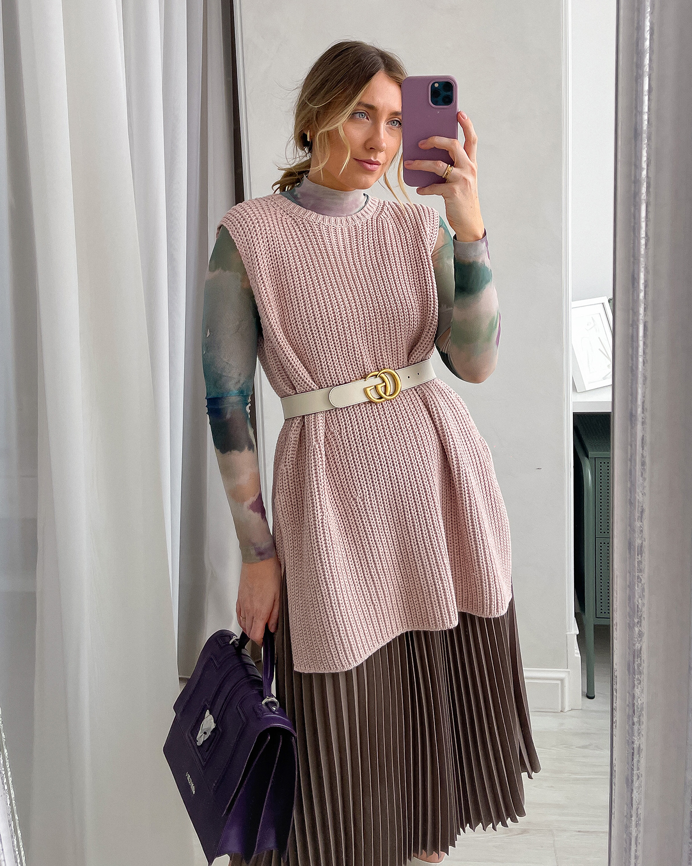 Полуприталенный жилет OUI серо-розового цвета в вертикальный строчный рисунок. Удлиненная хлопковая модель с круглым вырезом и небольшими разрезами по бокам. Жилет можно сочетать с рубашкой, блузой, тонкой водолазкой, жакетом, юбкой и брюками.