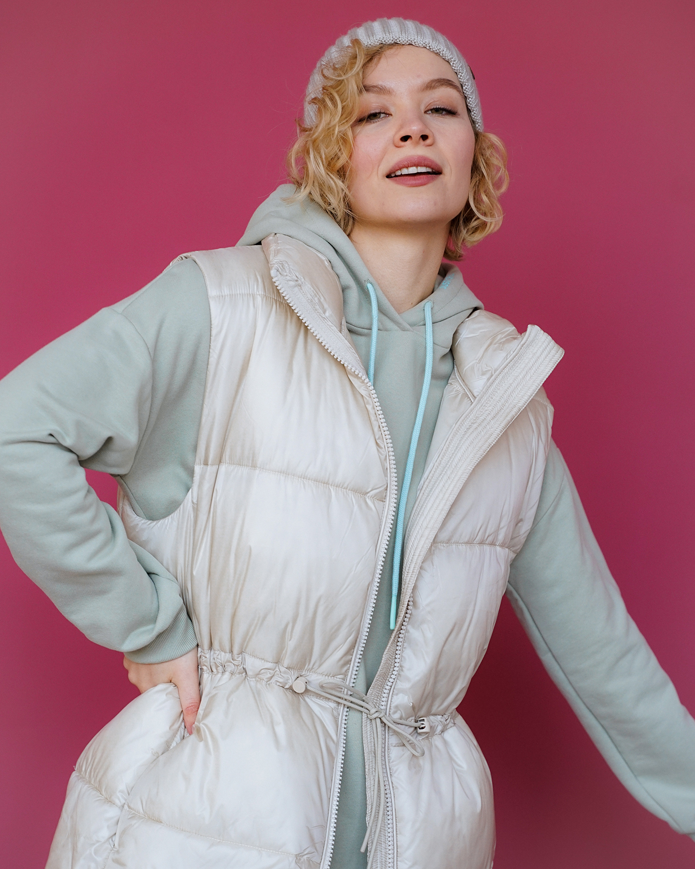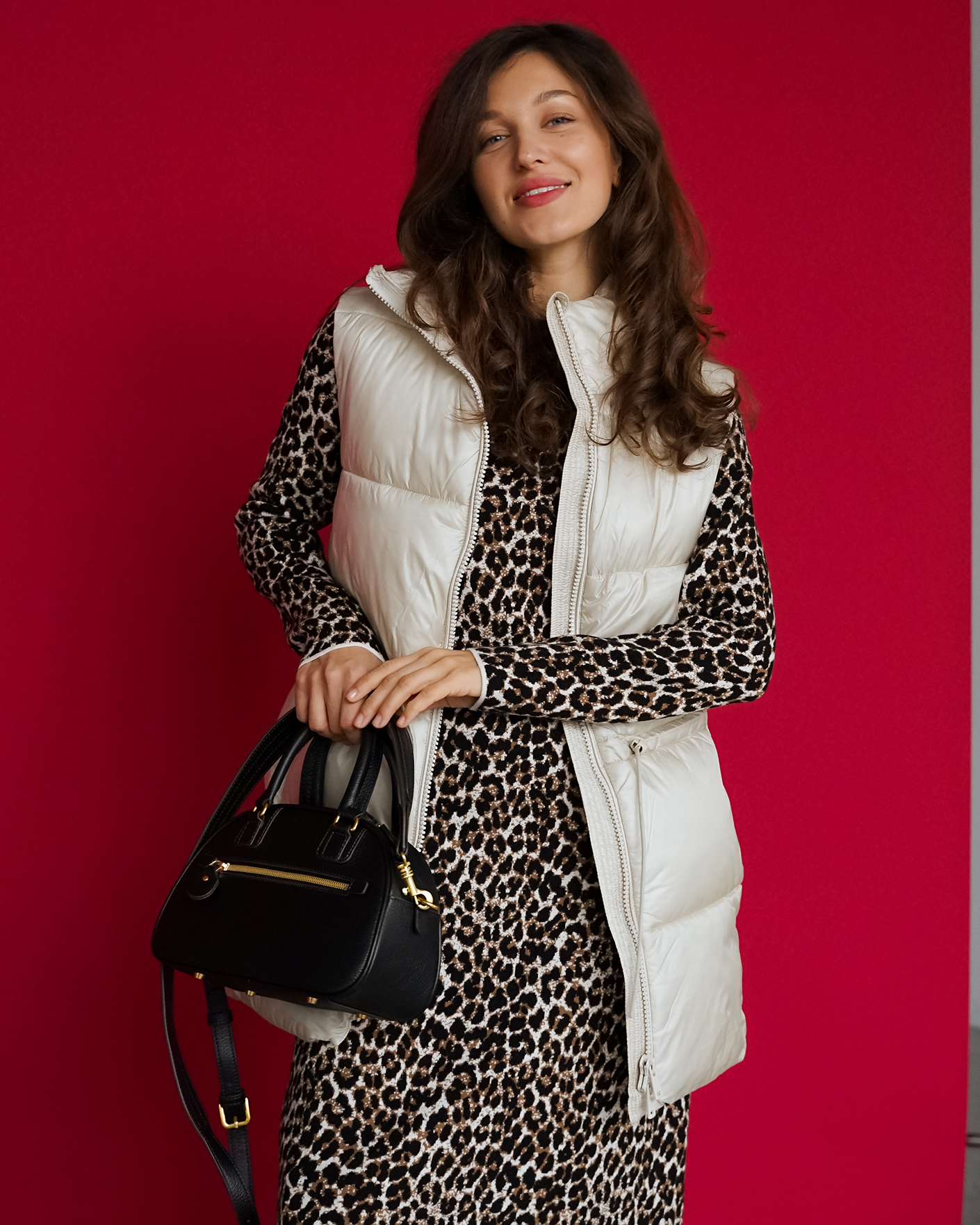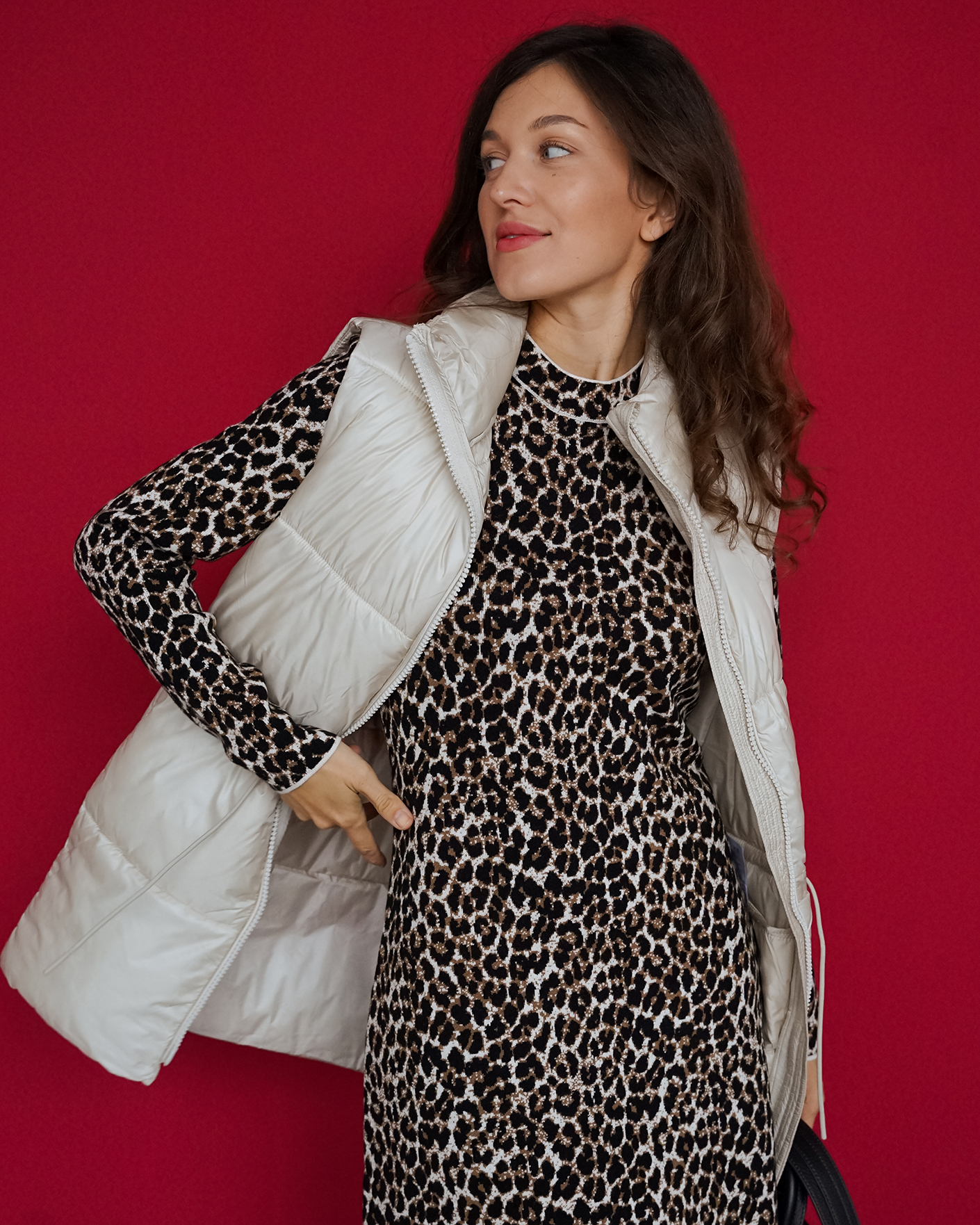 Универсальный образ для прогулок от OUI: жилет, платье-свитшот