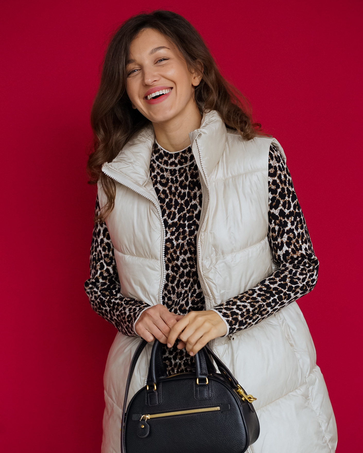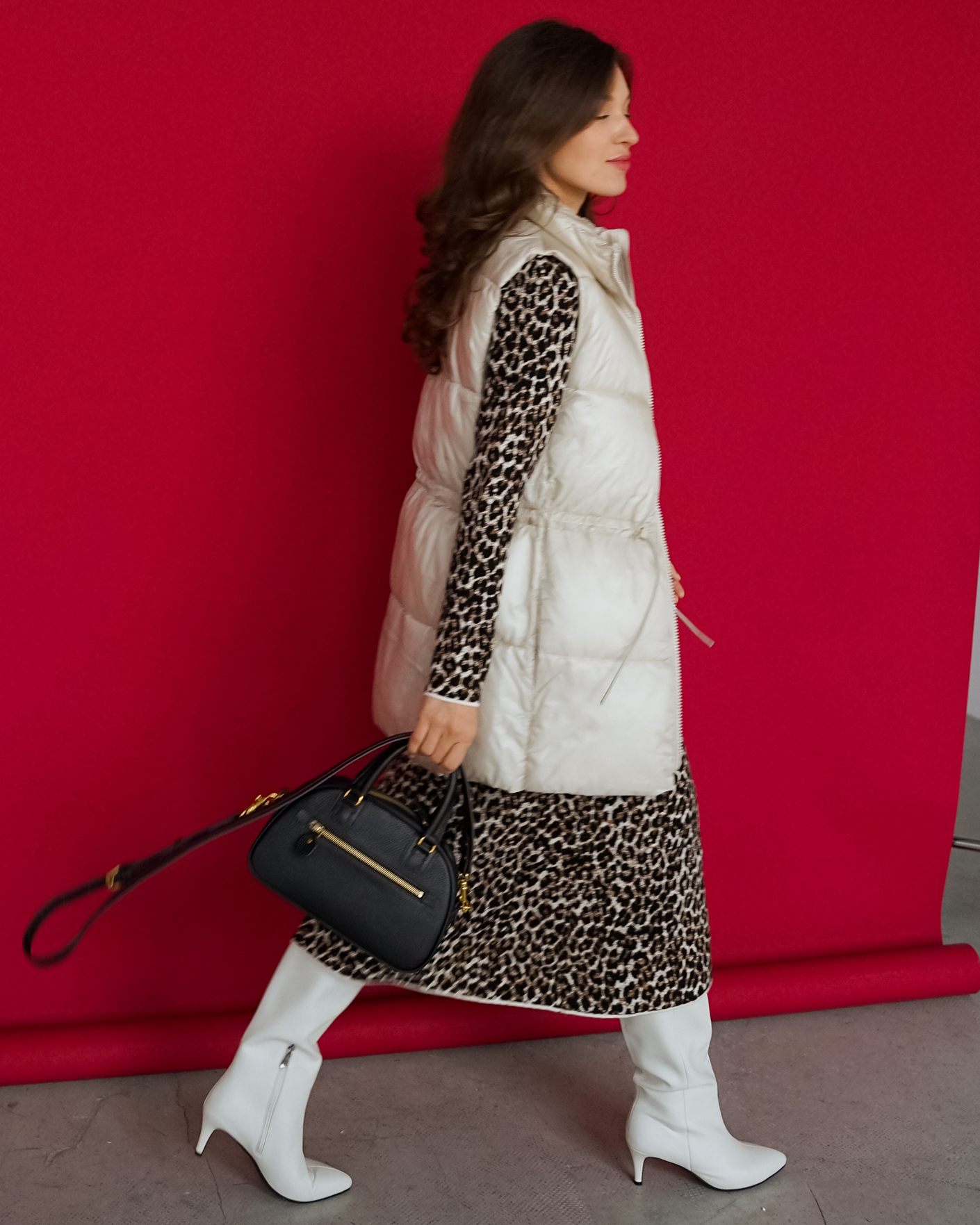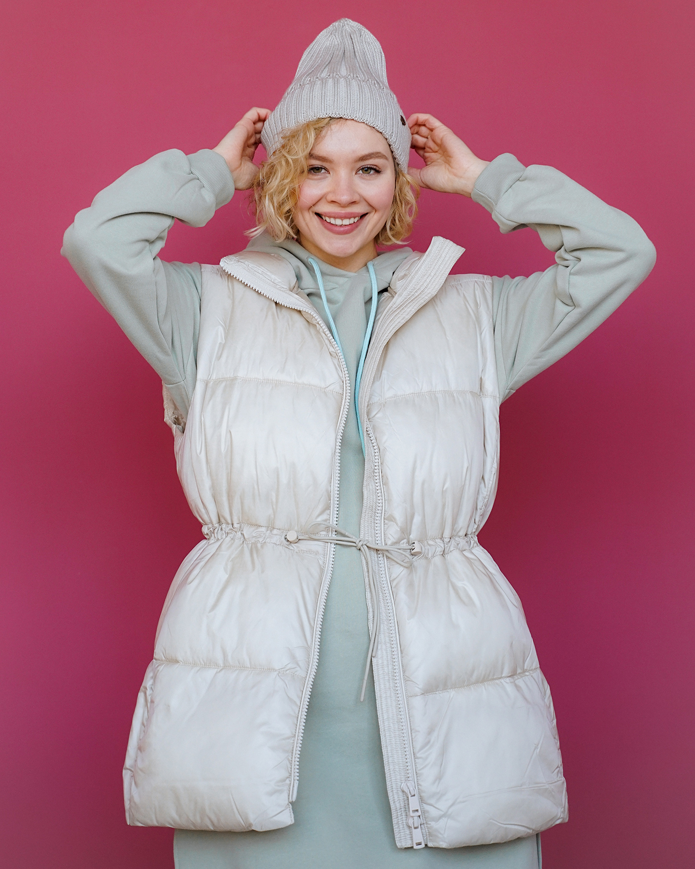 Универсальный образ для прогулок от OUI: жилет, платье-свитшот
