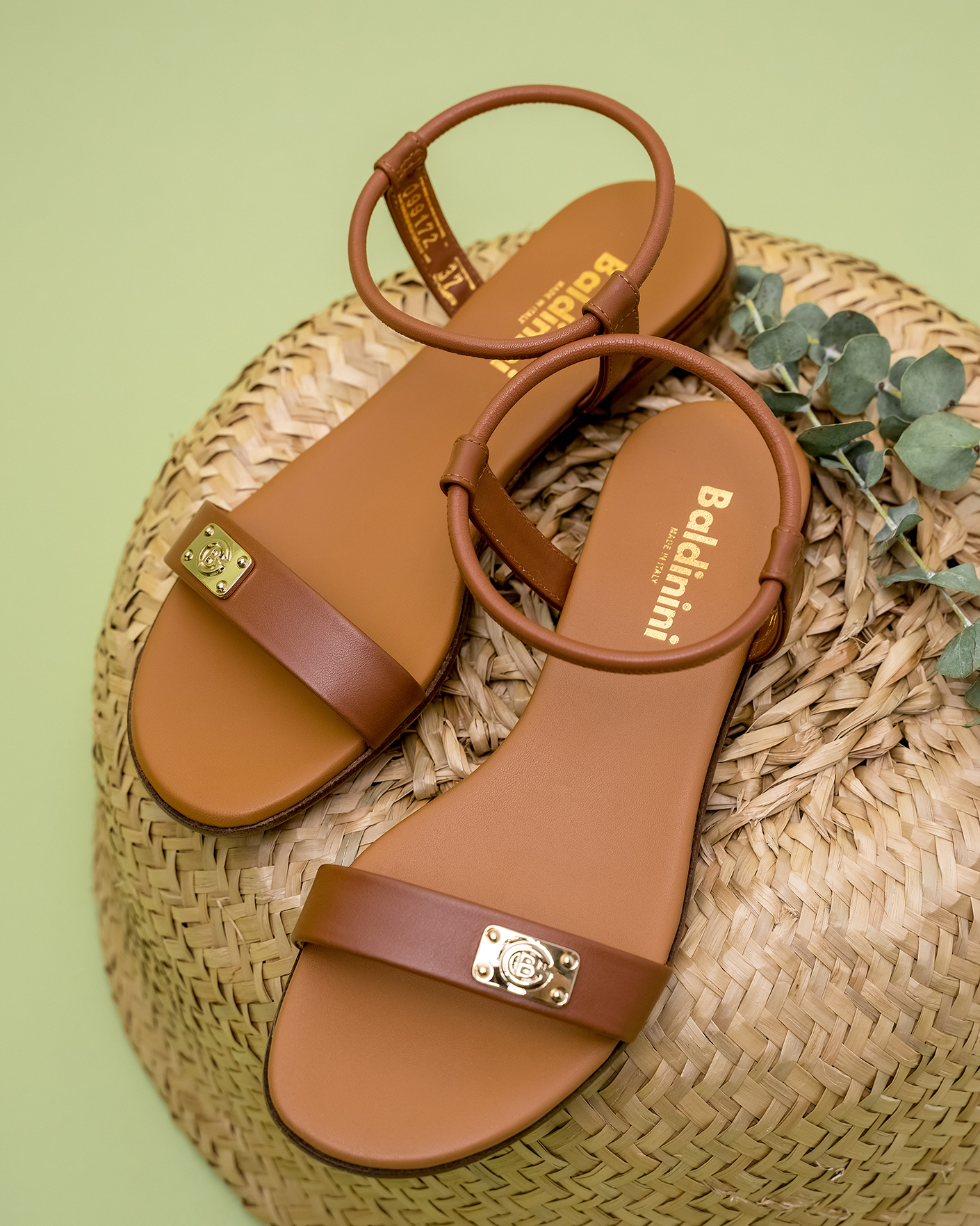 Босоножки на плоском ходу Baldinini светло-коричневого цвета выполнены из 100% кожи. Классические линии, минималистичный дизайн подчеркивают элегантность босоножек, украшенных небольшим логотипом. Идеальный выбор для тех, кто хочет выглядеть модно и элегантно.
