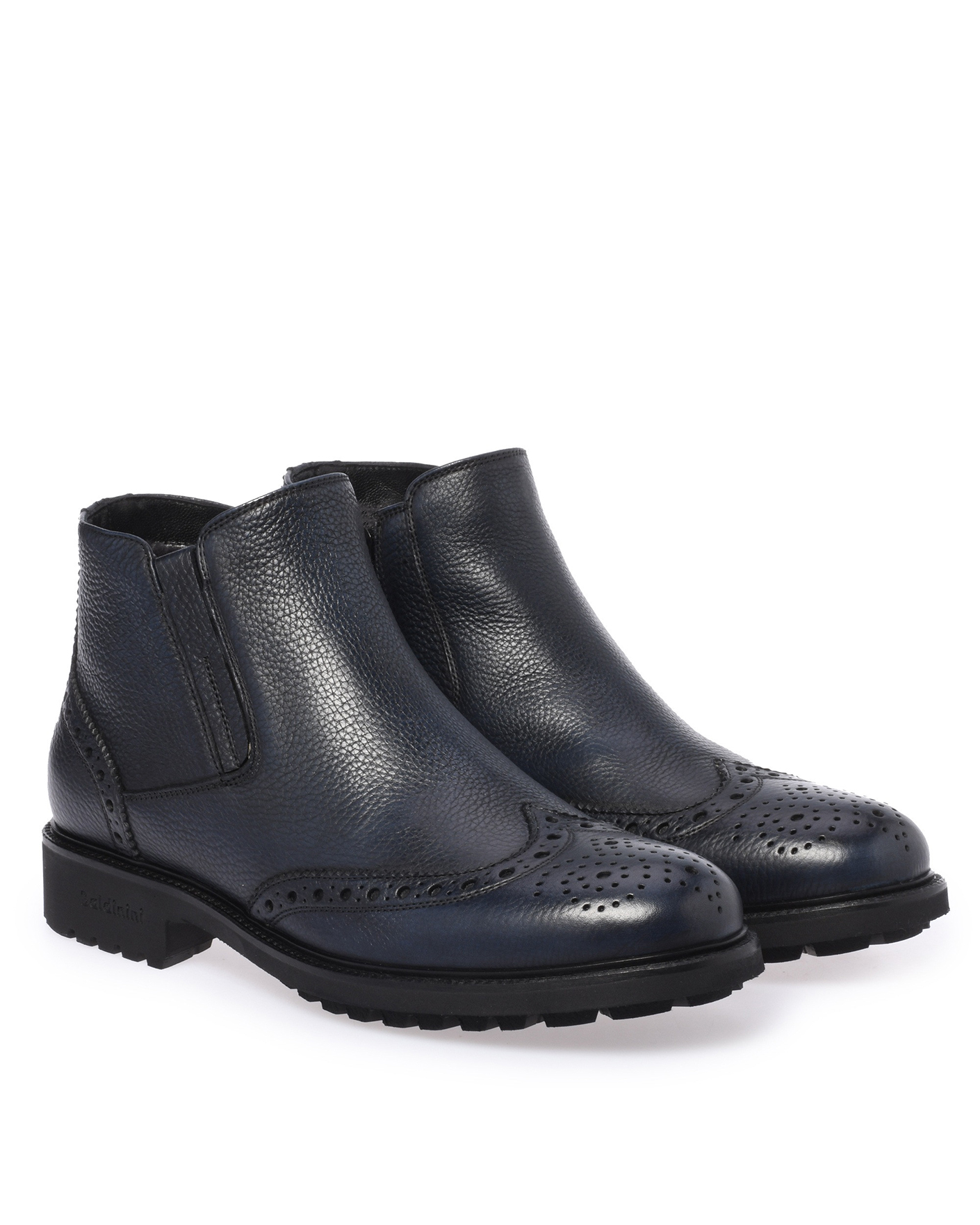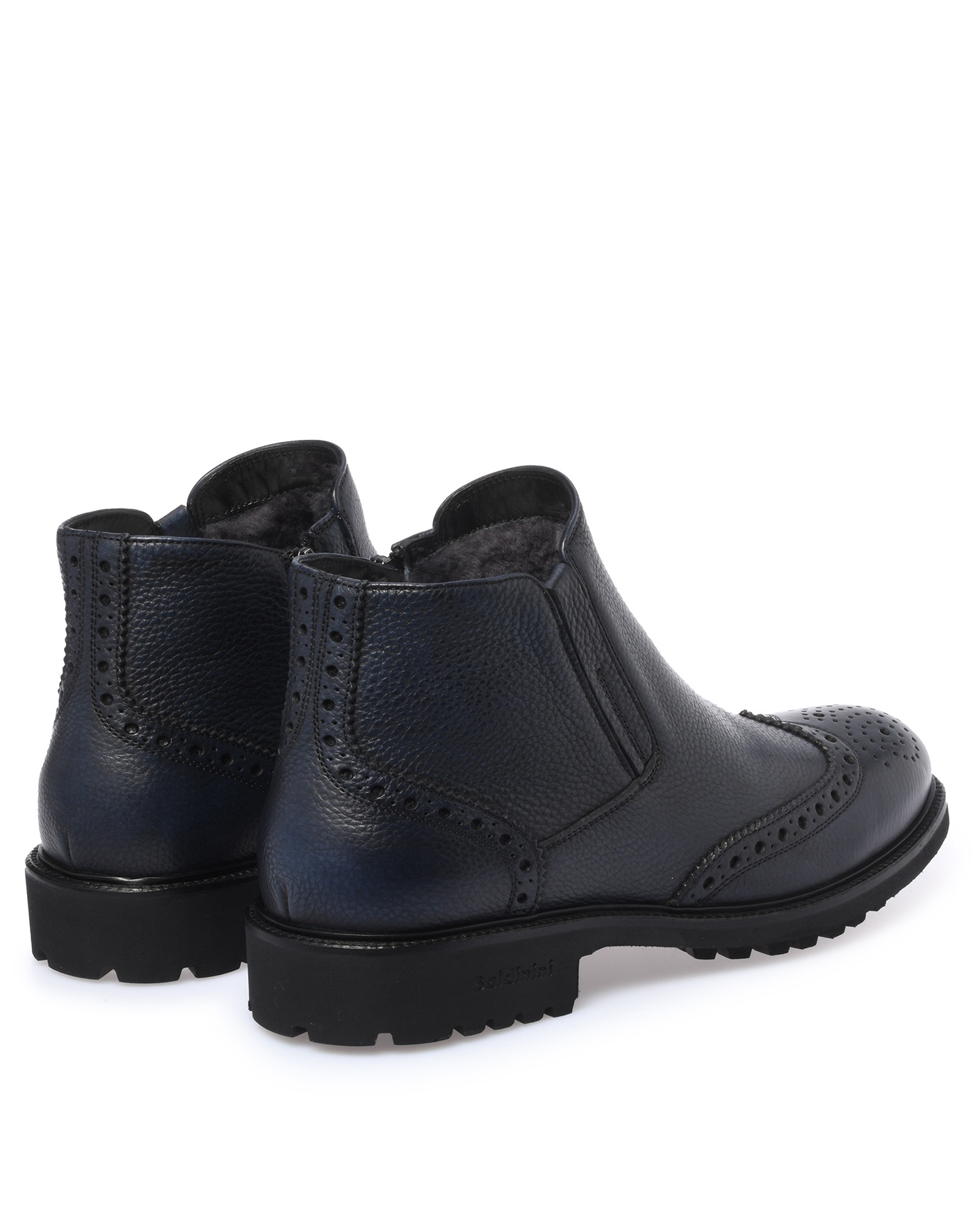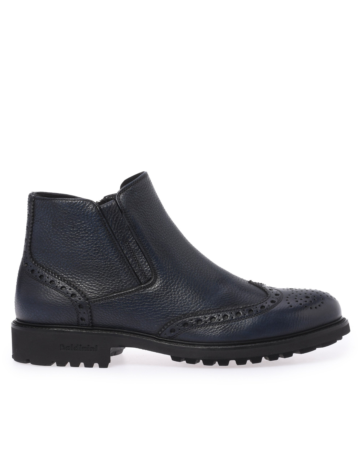 Ботинки-дерби Baldinini синего цвета с перфорацией выполнены из 100% кожи. Модель на внутренней молнии и внешней резинки. Эти ботинки-дерби с современным дизайном идеально подходят для холодной зимы благодаря теплой меховой подкладке.