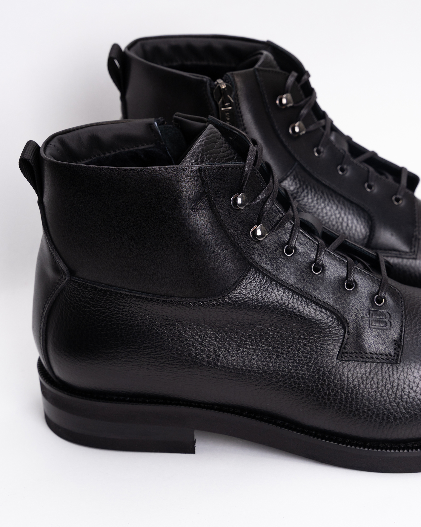 Ботинки Baldinini черного цвета выполнены из 100% кожи. Высокая модель на шнуровке, перфорацией и застежкой на молнию. Стильные ботинки идеально подойдут для деловых образов.