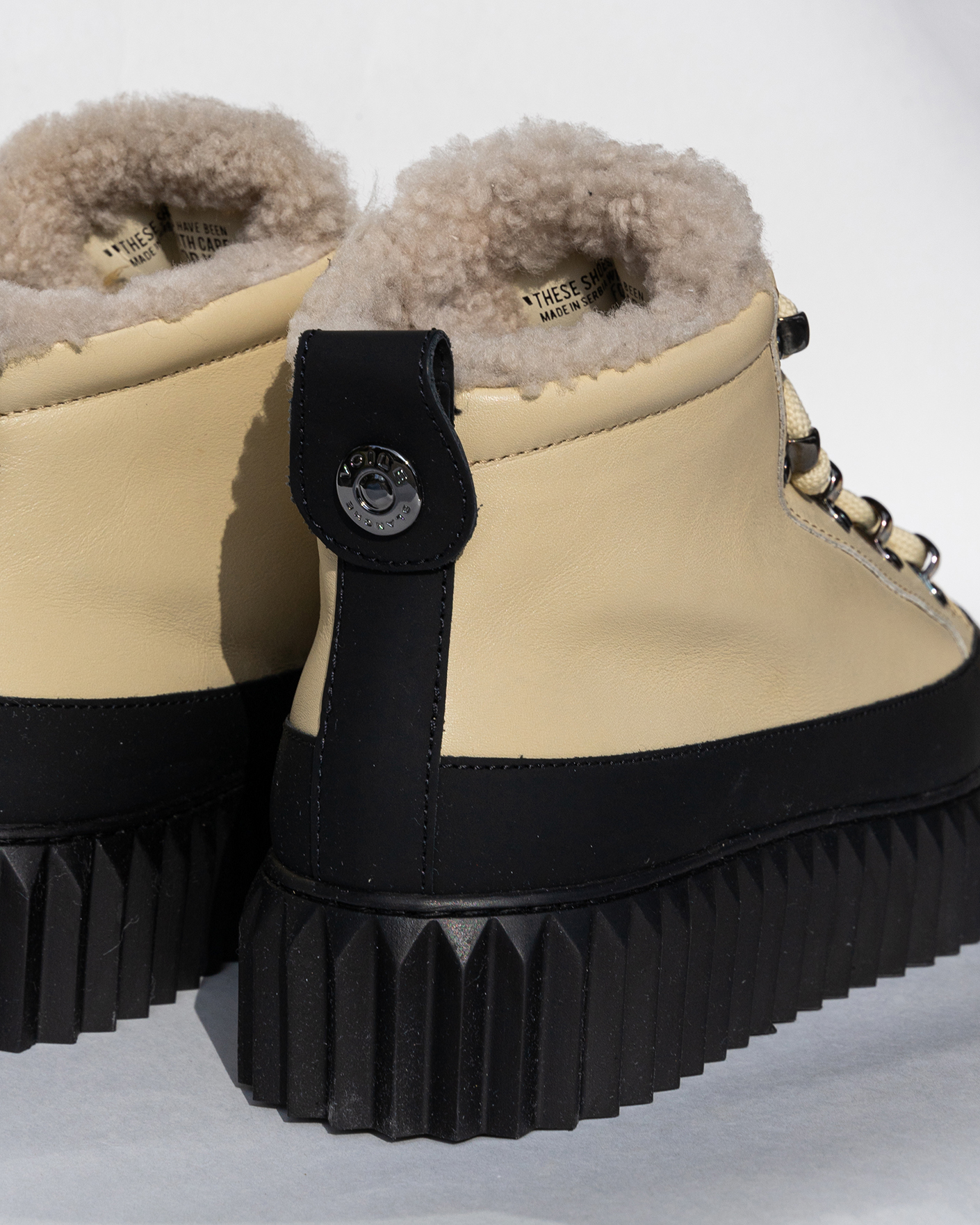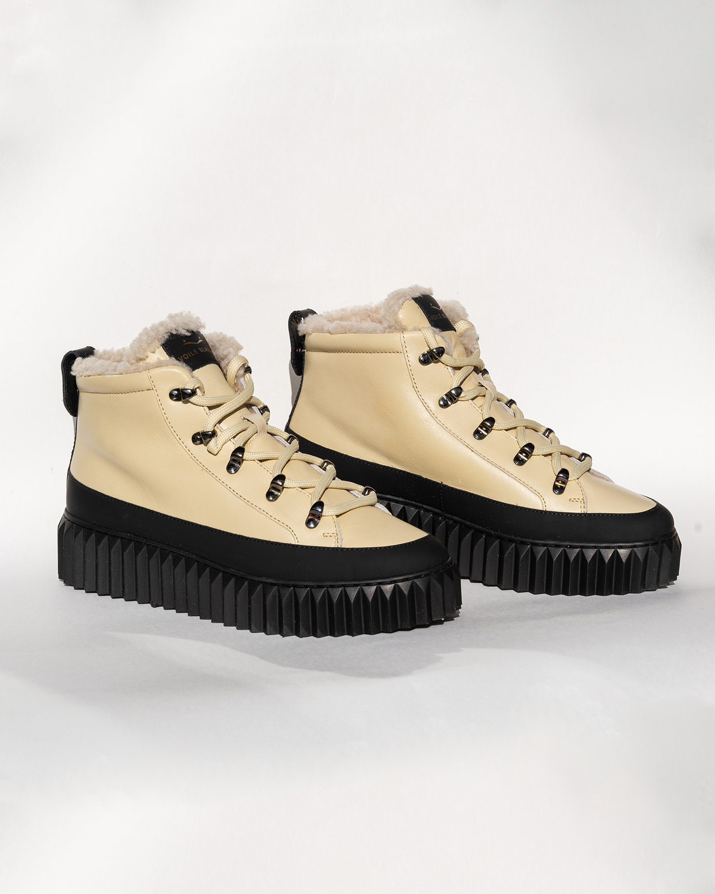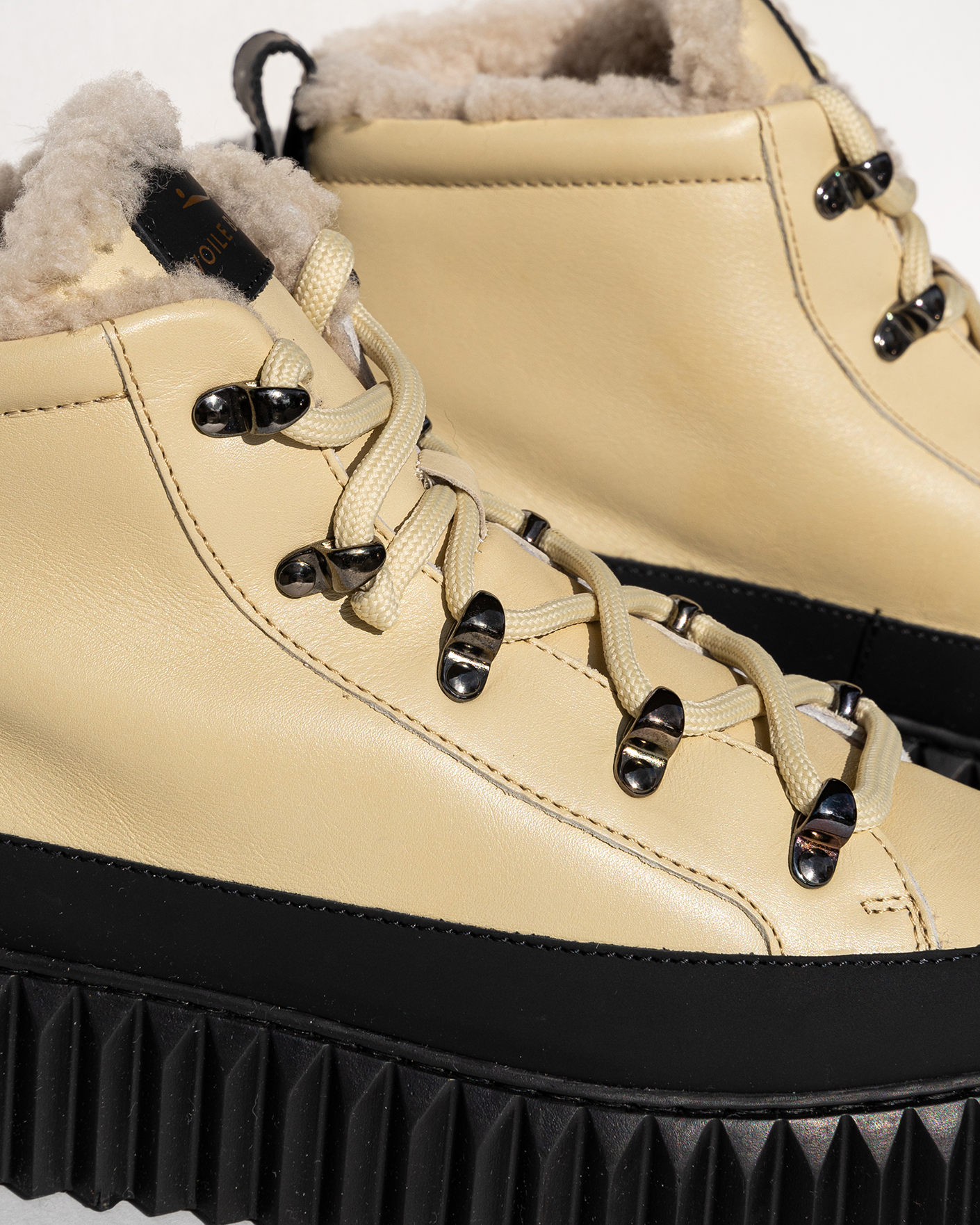 Ботинки Voile Blanche черно-молочного цвета из 100% кожи. Удлиненная модель на шнуровке, с внутренней отделкой на меху, а также на массивной рельефной подошве черного цвета. Стильные и идеальные ботинки станут отличными спутниками на каждый день.