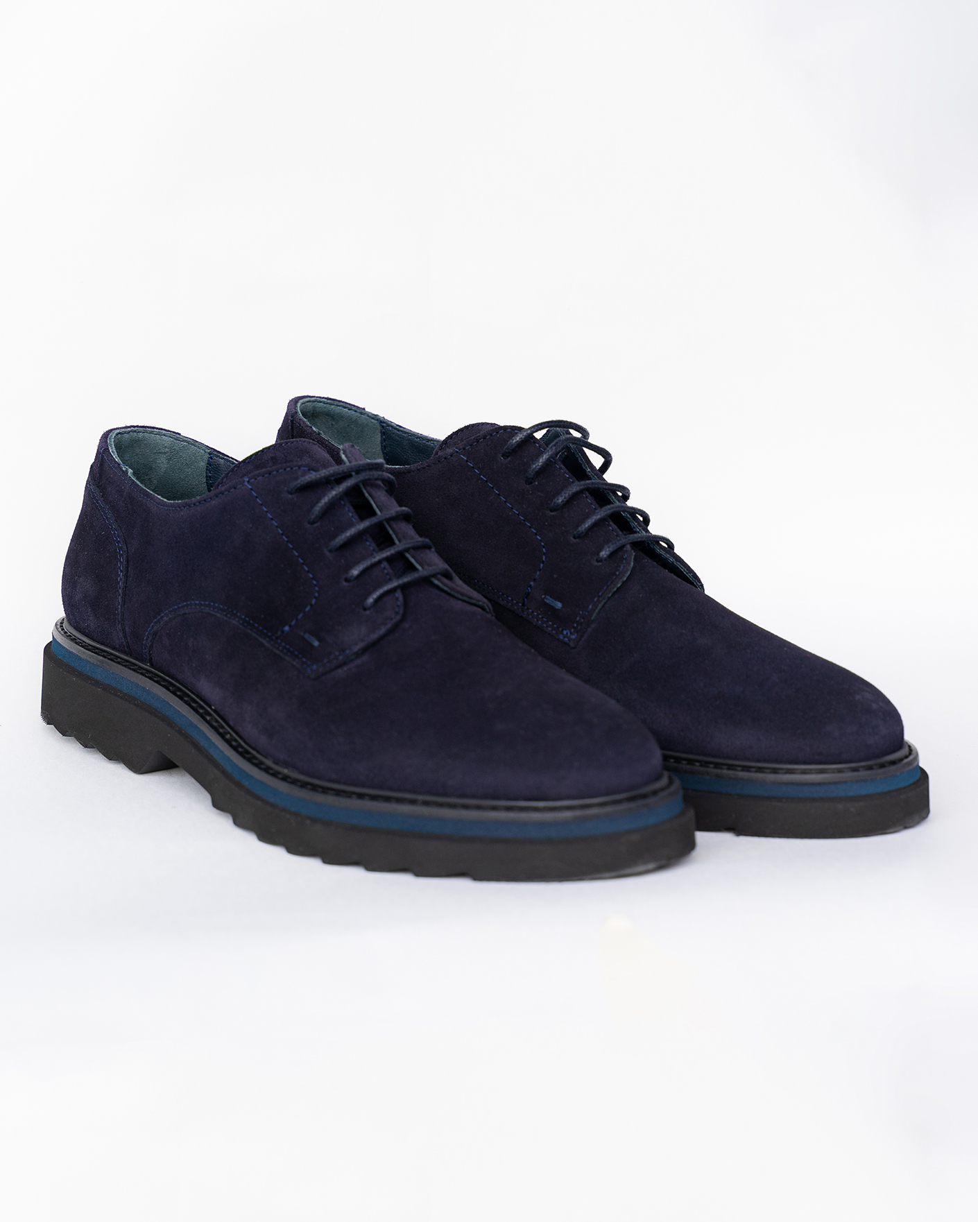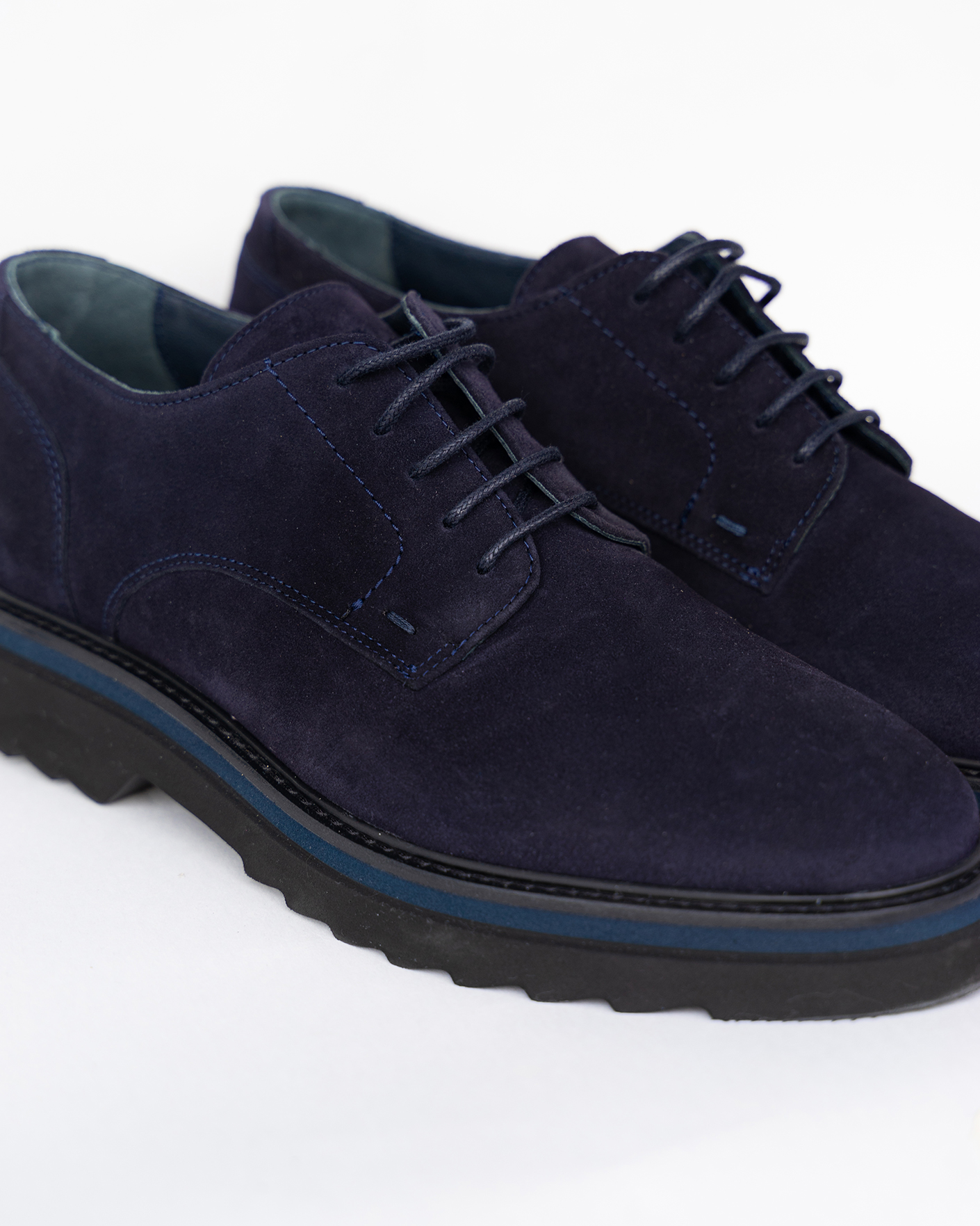 Полуботинки Harmont&Blaine темно-синего цвета выполнены из 100% замши. Модель на шнуровке, резиновой подошве и акцентной строчкой в тон. Полуботинки - незаменимый повседневный выбор.