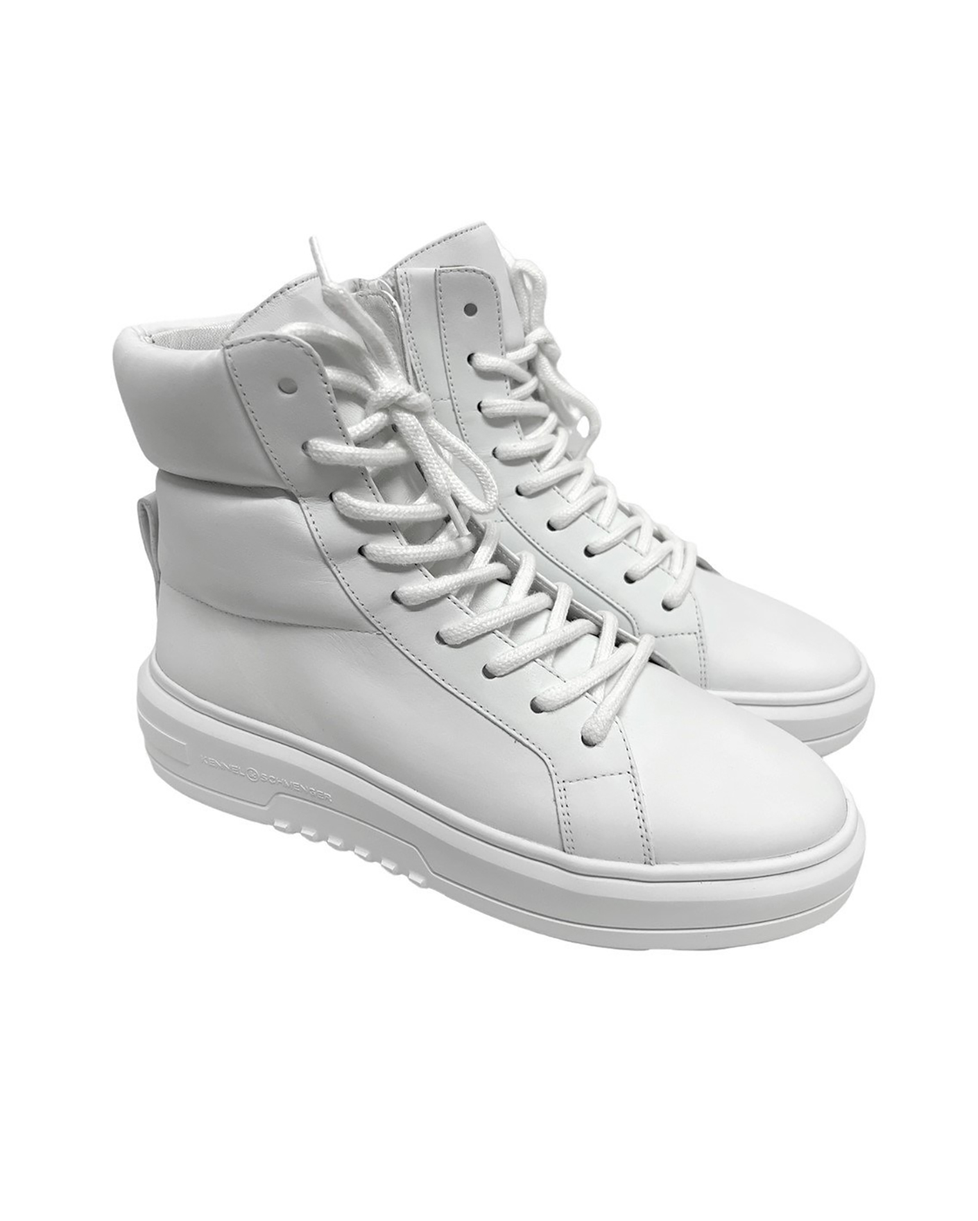 Высокие кеды-хайтопы Kennel&Schmenger белого цвета выполнены из 100% кожи. Модель на шнуровке и замком с внутренней стороны. Декоративная стежка в тон, резиновая подошва с логотипом бренда. Стильные кеды станут идеальными спутниками на каждый день.