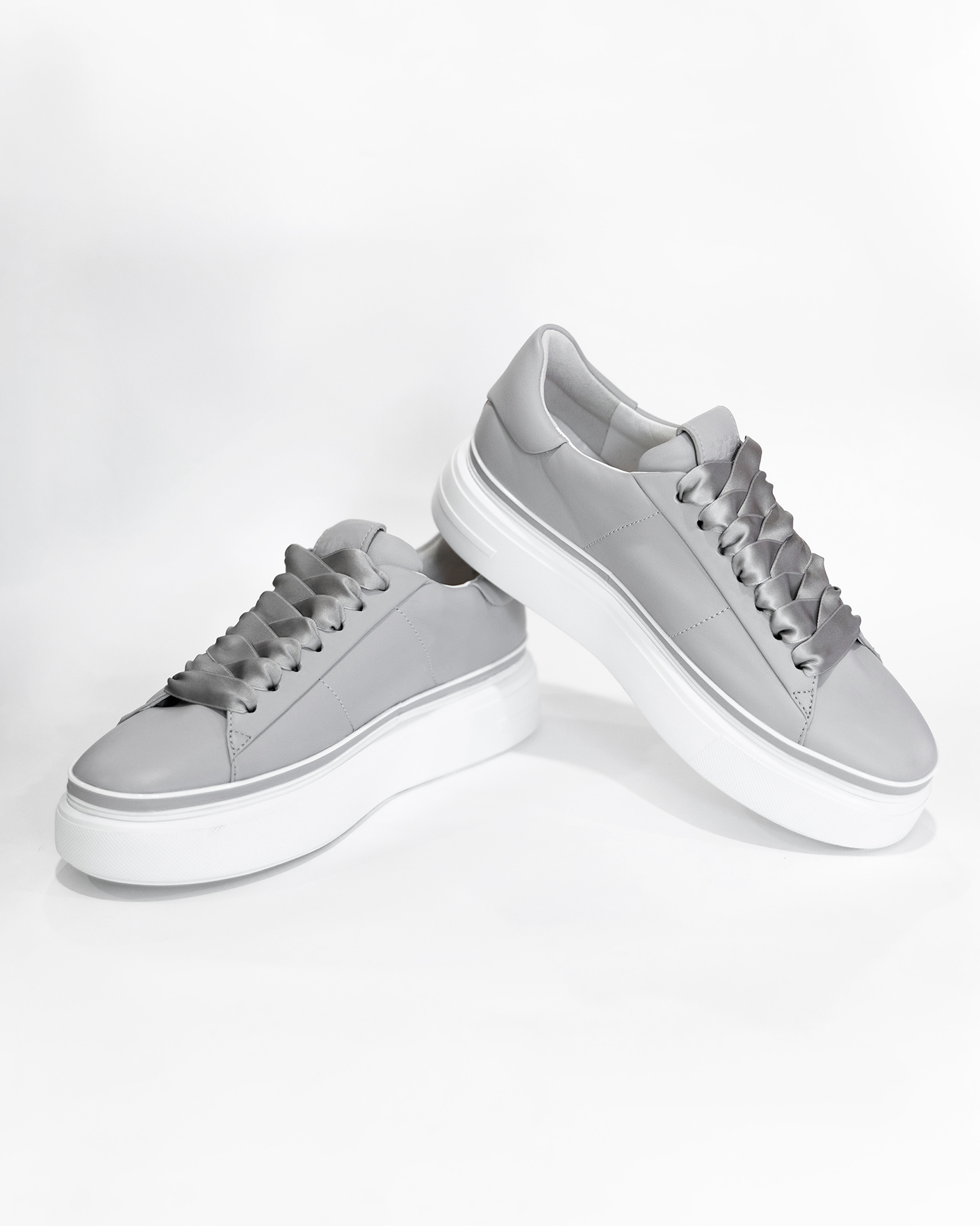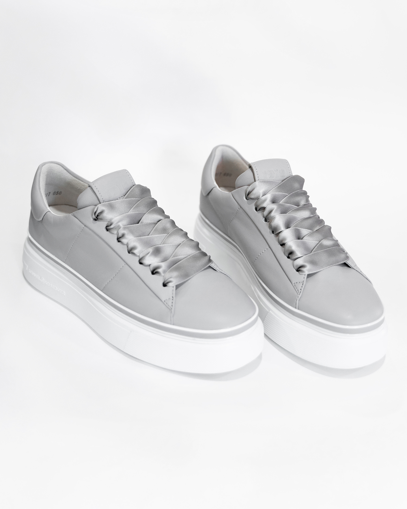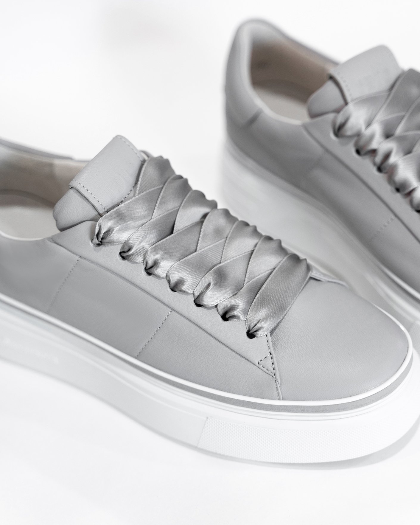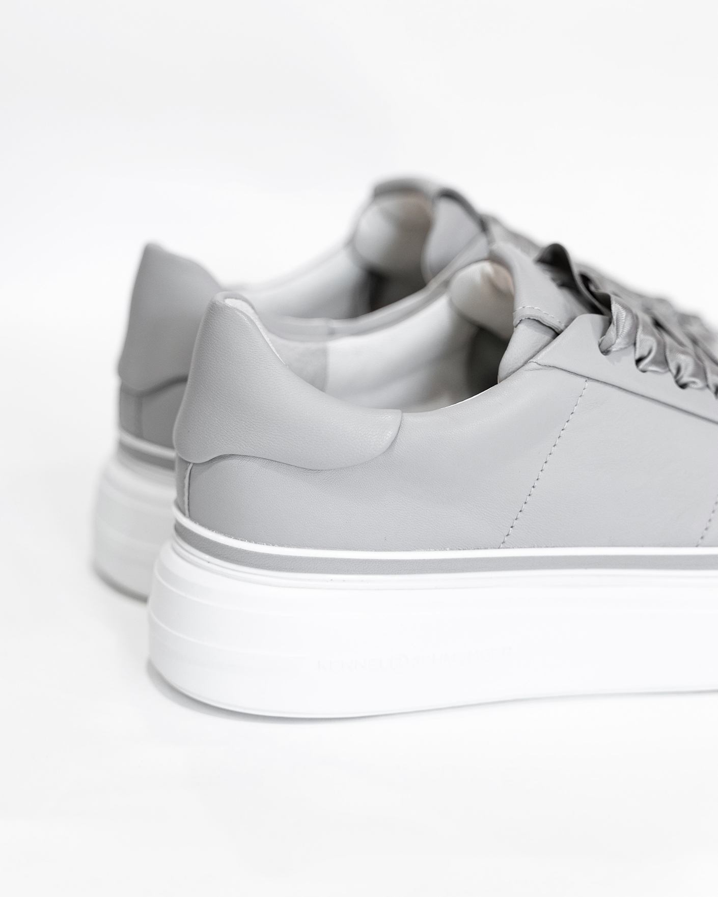 Кеды Kennel&Schmenger серого цвета выполнены из 100% кожи. Модель на шнуровке атласной лентой в тон, объемная стежка, а также массивная подошва белого цвета. Стильные кеды идеальны на каждый день.