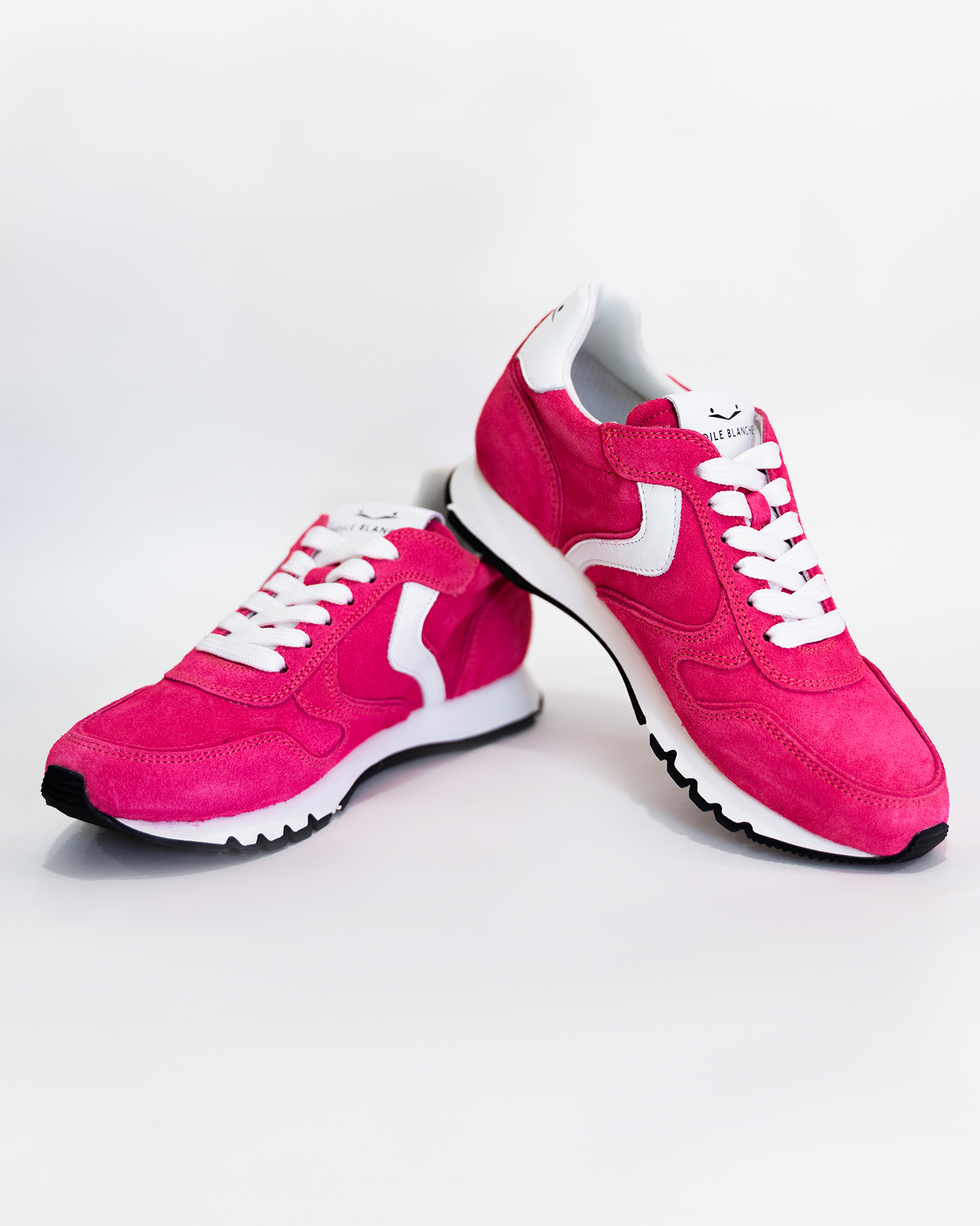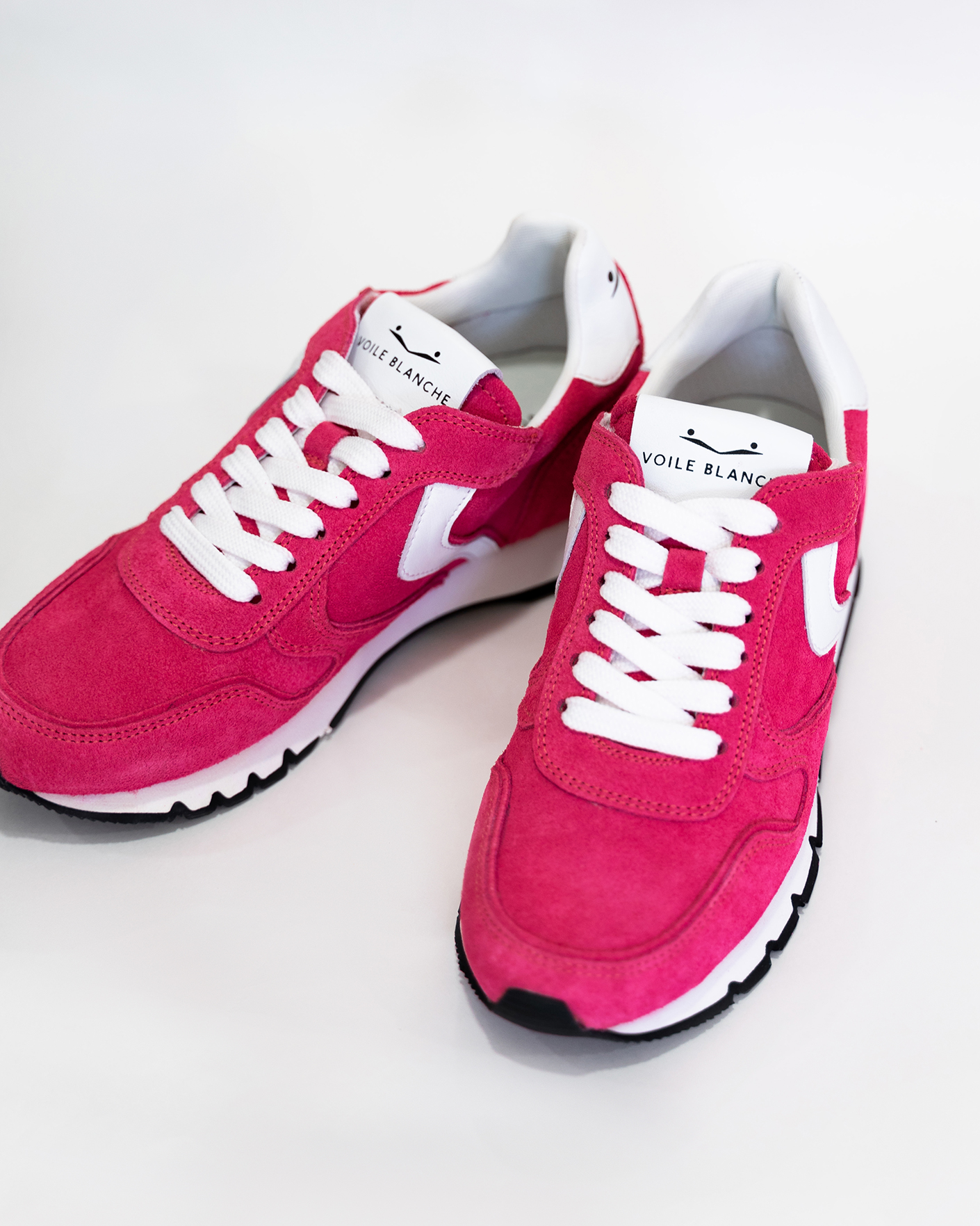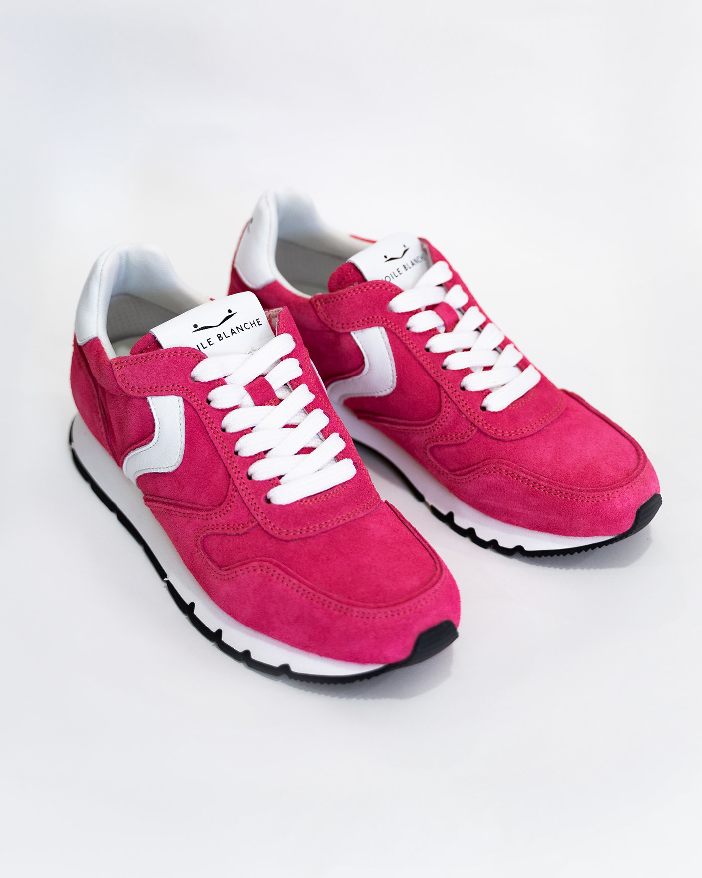 Повседневные кроссовки Voile Blanche цвета фуксии. Замшевая модель с контрастной вставкой на шнуровке белого цвета. Кроссовки станут вашими фаворитами.