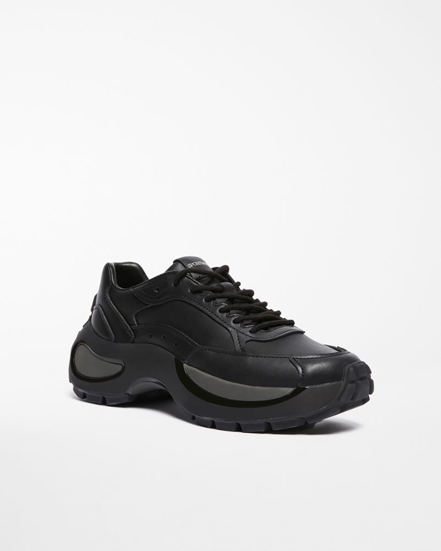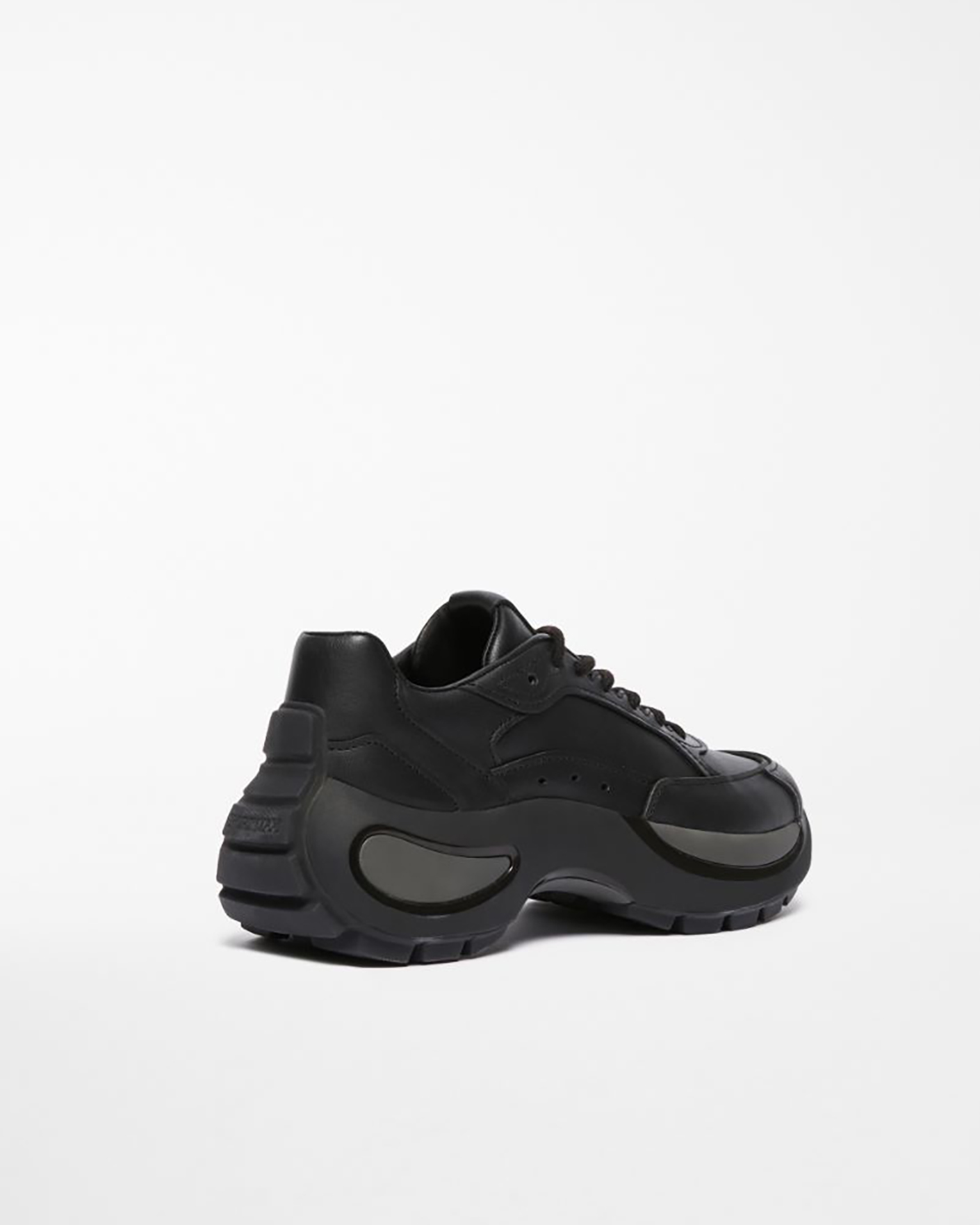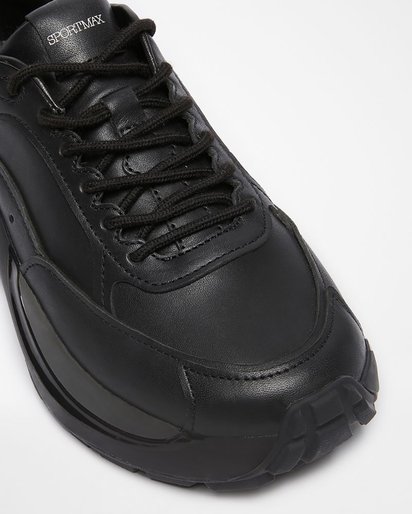 Повседневные кроссовки Sportmax черного цвета выполнены из 100% телячьи кожи. Модель на шнуровке, резиновая подошва с массивной пяткой обеспечивает комфорт в течение всего дня. Удобная и практичная обувь на каждый день.