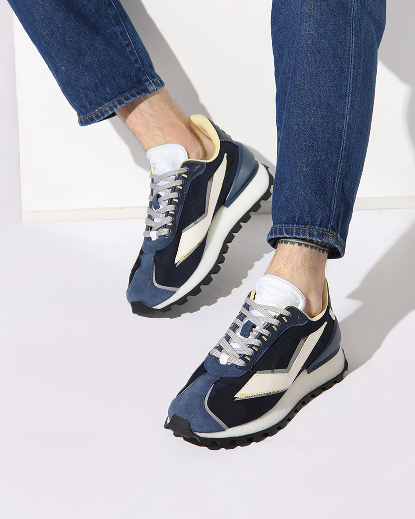 Кроссовки Voile Blanche синего цвета выполнены из комбинированных текстур. Модель на шнуровке, белой подошве и акцентными деталями. Удобные и стильные кроссовки станут фаворитами на каждый день.