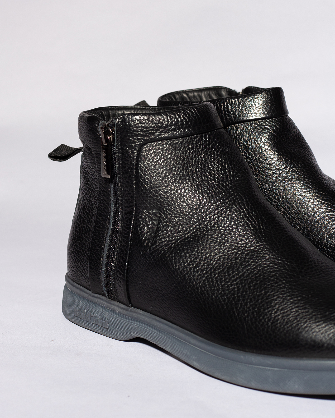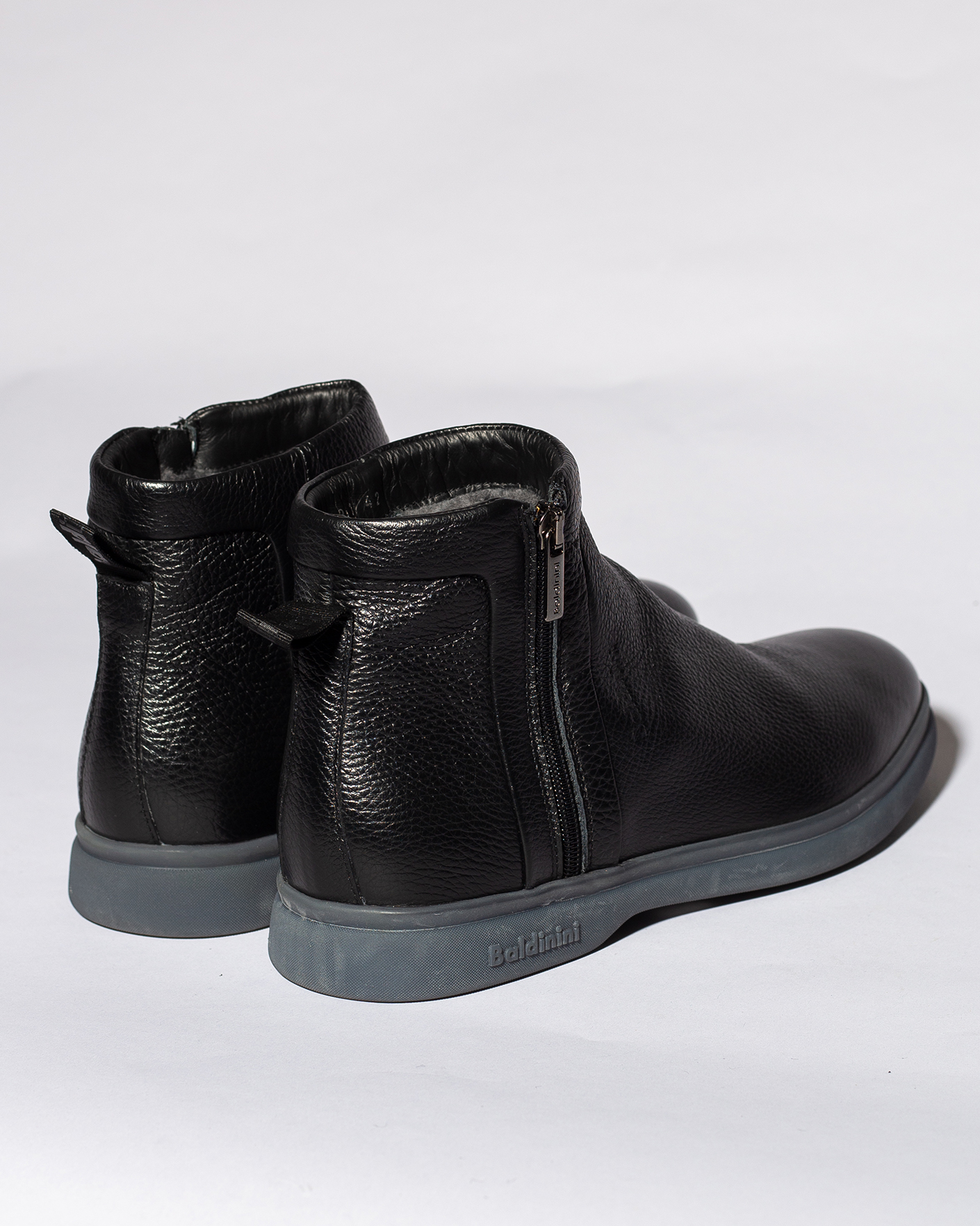Полусапоги Baldinini черного цвета выполнены из 100% зернистой кожи. Модель на молнии с внешней стороны и на контрастной резиновой подошве, что обеспеичвает максимальное сцепление с поверхностью. Полусапоги - теплый и надежный спутник на каждый день.