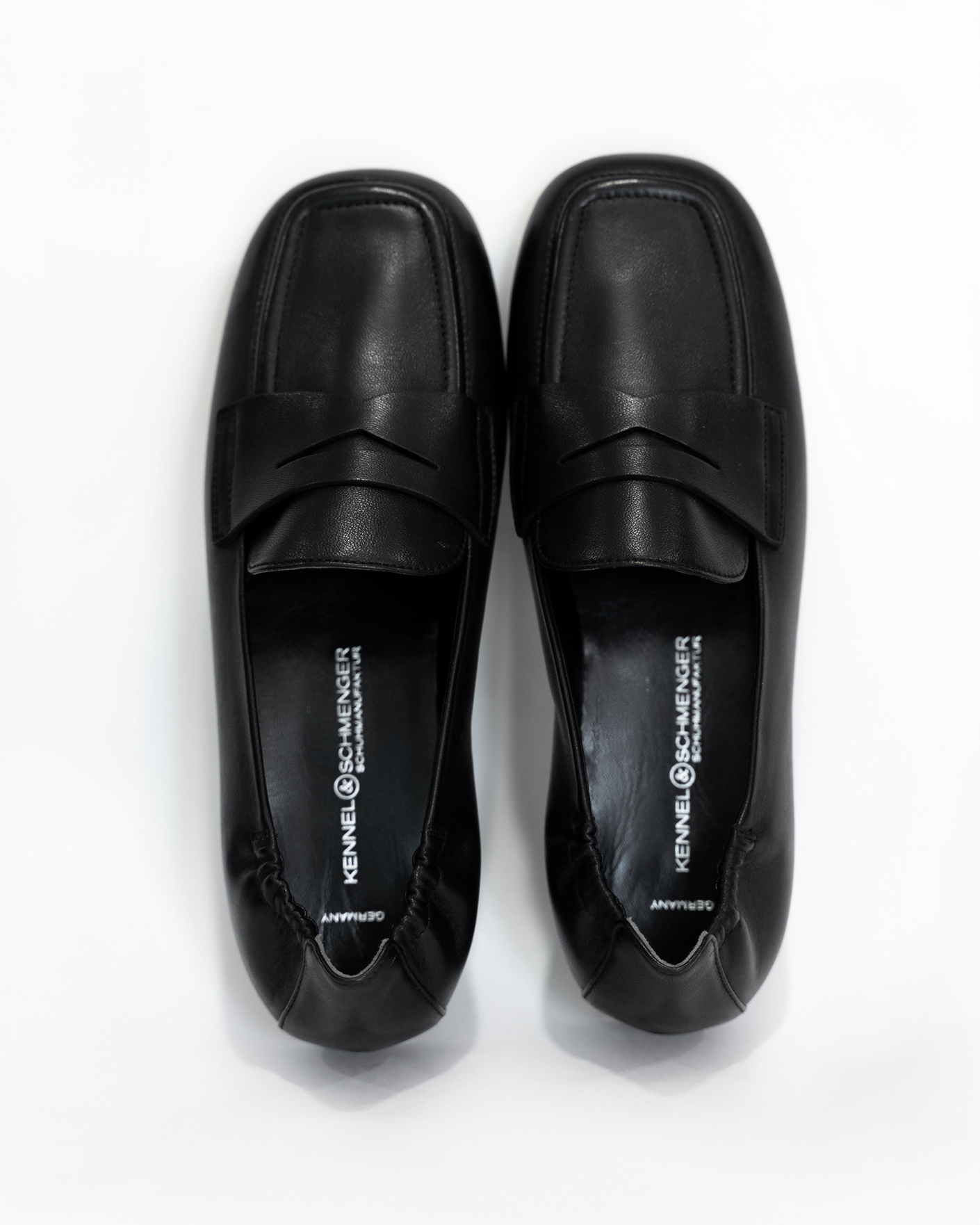 Пенни-лоферы Kennel&Schmenger черного цвета. Модель из 100% кожи с небольшим декором по верху и декоративными швами в тон, а также закрытая пятка на резинке, тонкая подошва. Пенни-лоферы отлчино сочетаются с любым гардеробом.