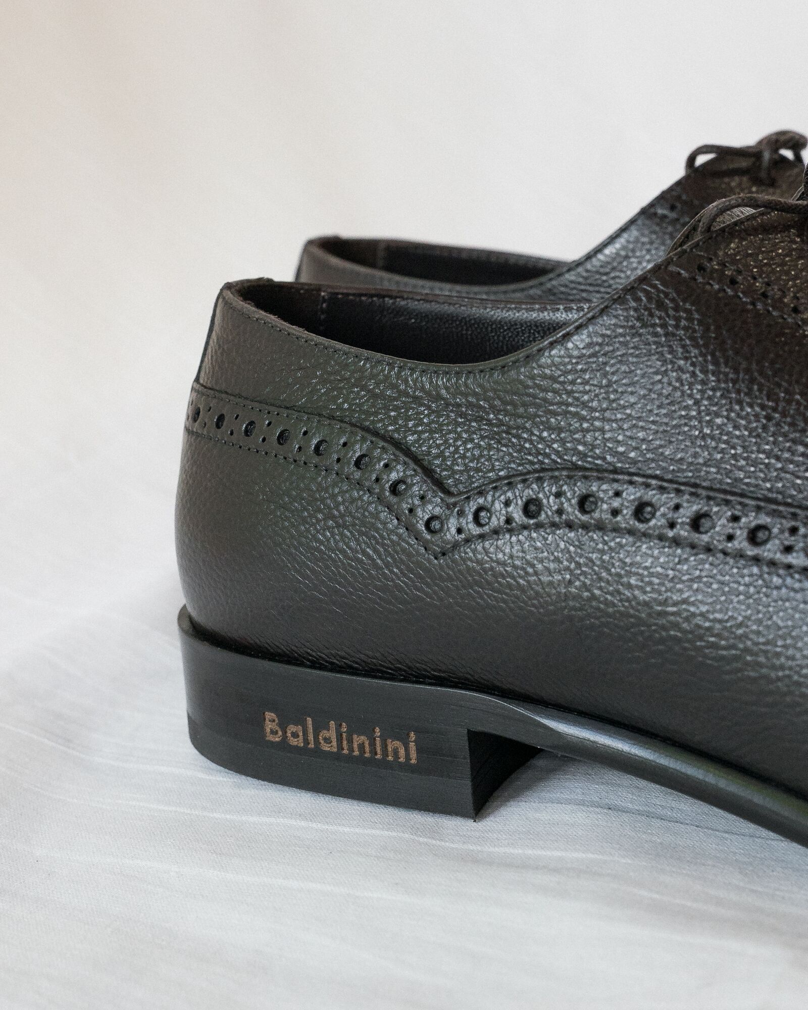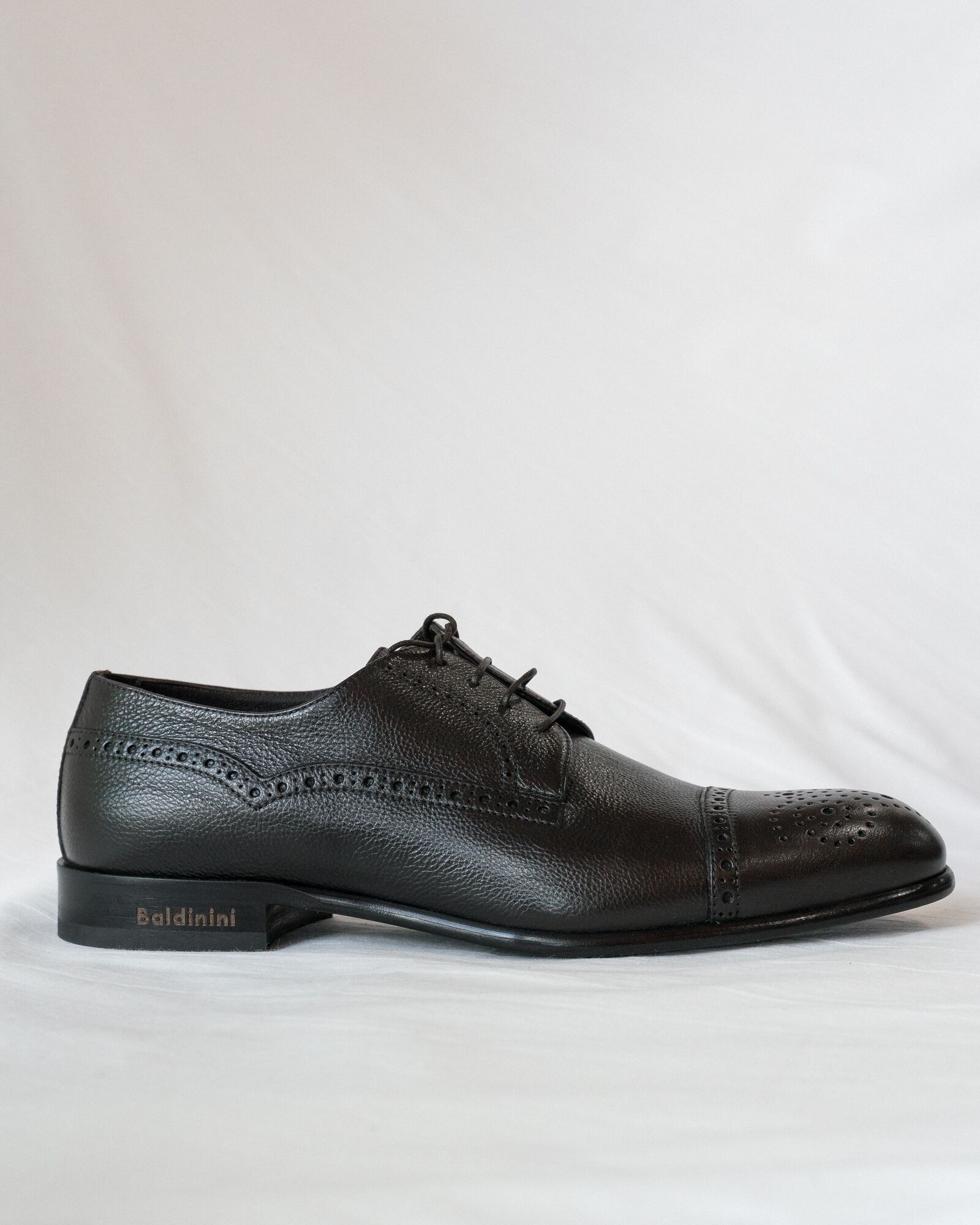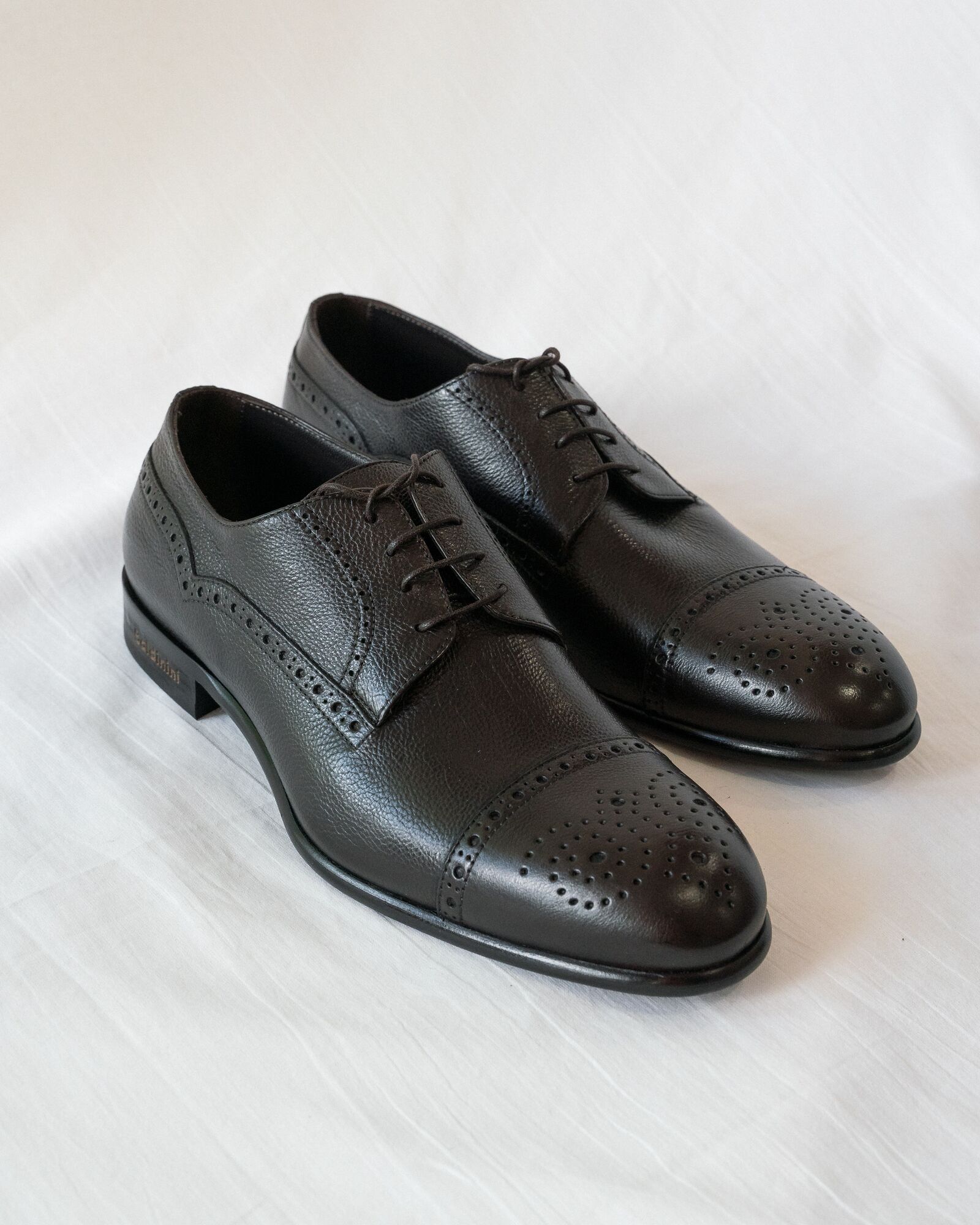 Стильные туфли брогги на шнурках выполнены из 100% кожи темно-коричневого цвета с декоративной перфорацией. Комфортная и актуальная модель придаст стиля любому летнему образу.